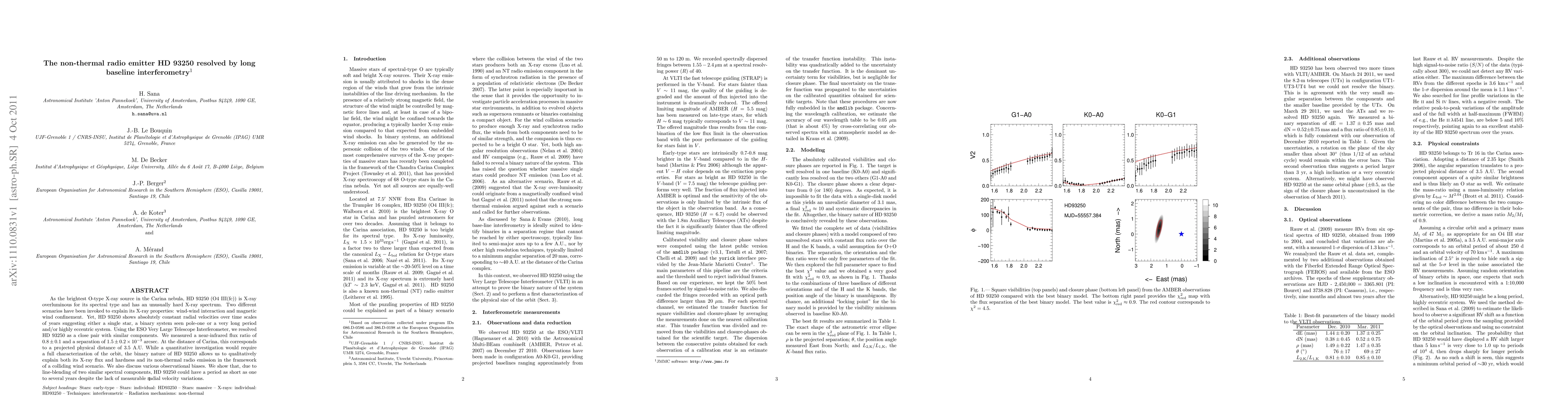 HD 93250, an O-type X-ray source in the Carina nebula, has been resolved as a binary system using interferometry, suggesting a colliding wind scenario that explains its X-ray properties and non-thermal radio emission. Despite constant radial velocities, the binary nature implies a possible short orbital period.