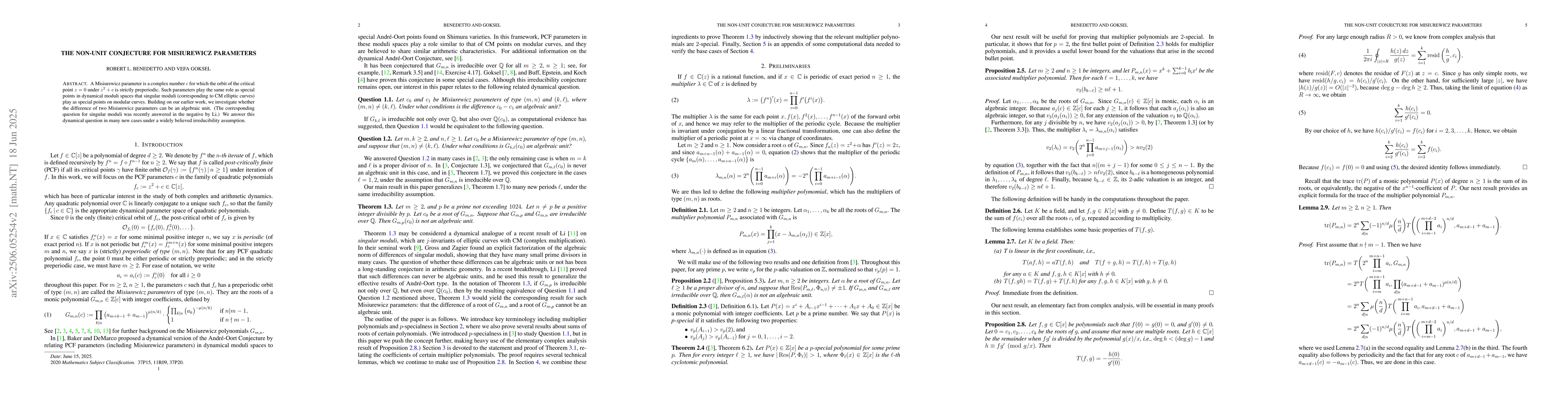 A Misiurewicz parameter is a complex number $c$ for which the orbit of the critical point $z=0$ under $z^2+c$ is strictly preperiodic. Such parameters play the same role in dynamical moduli spaces as singular moduli (corresponding to CM elliptic curves) play on modular curves. Building on our earlier work, we investigate whether the difference of two Misiurewicz parameters can be an algebraic unit. (The corresponding question for singular moduli was recently answered in the negative by Li.) We answer this dynamical question in many new cases under a widely believed irreducibility assumption.