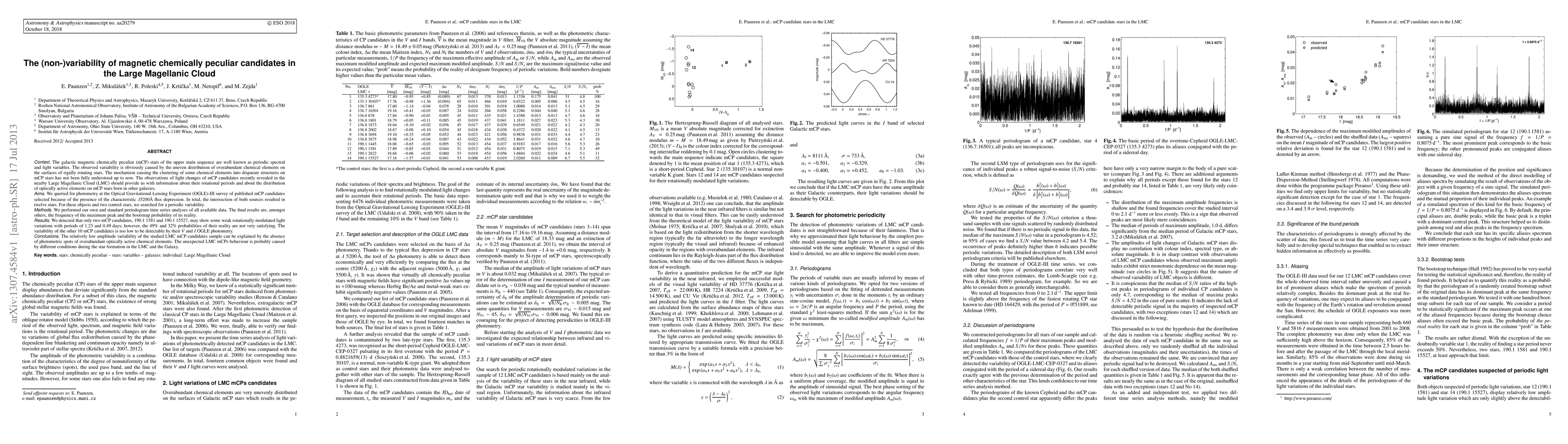 The study of magnetic chemically peculiar (mCP) stars in the Large Magellanic Cloud (LMC) found that only two out of twelve candidates exhibit weak rotationally modulated light variations, while the rest show negligible variability, suggesting different star formation conditions compared to the Galaxy.
