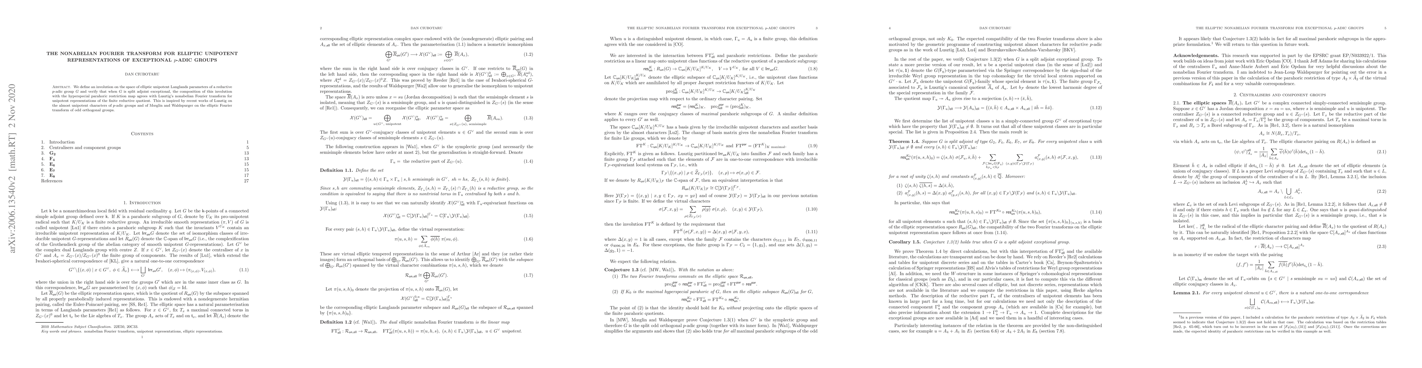 We define an involution on the space of elliptic unipotent Langlands parameters of a reductive $p$-adic group $G$ and verify that when $G$ is split adjoint exceptional, the composition of this involution with the hyperspecial parahoric restriction map agrees with Lusztig's nonabelian Fourier transform for unipotent representations of the finite reductive quotient. This is inspired by recent works of Lusztig on the almost unipotent characters of $p$-adic groups and of Moeglin and Waldspurger on the elliptic Fourier transform of odd orthogonal groups.