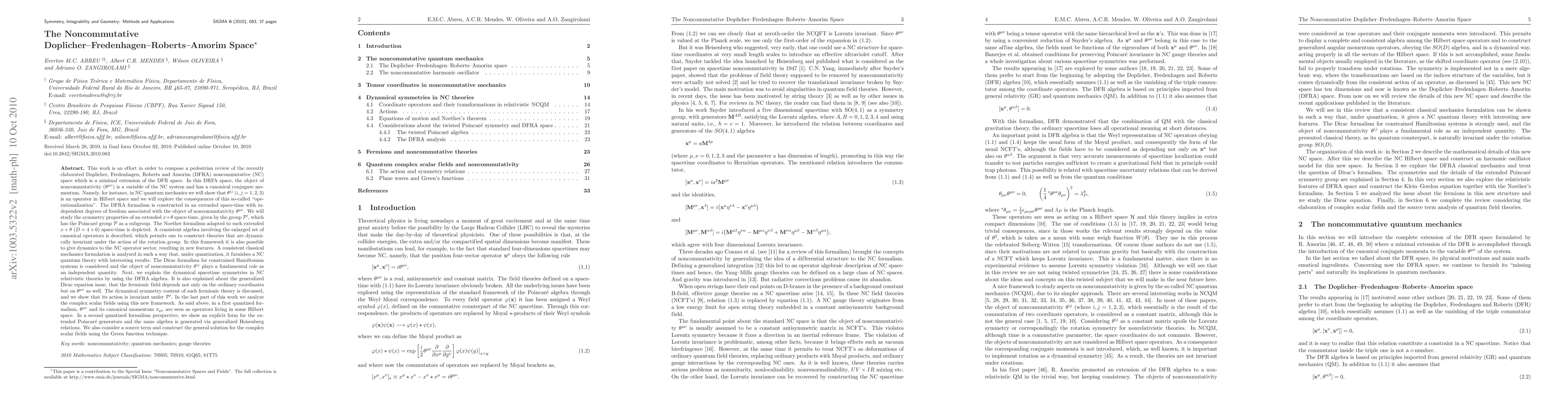 This work is an effort in order to compose a pedestrian review of the recently elaborated Doplicher, Fredenhagen, Roberts and Amorim (DFRA) noncommutative (NC) space which is a minimal extension of the DFR space. In this DRFA space, the object of noncommutativity ($\theta^{\mu\nu}$) is a variable of the NC system and has a canonical conjugate momentum. The DFRA formalism is constructed in an extended space-time with independent degrees of freedom associated with the object of noncommutativity $\theta^{\mu\nu}$. A consistent algebra involving the enlarged set of canonical operators is described, which permits one to construct theories that are dynamically invariant under the action of the rotation group. A consistent classical mechanics formulation is analyzed in such a way that, under quantization, it furnishes a NC quantum theory with interesting results. The Dirac formalism for constrained Hamiltonian systems is considered and the object of noncommutativity $\theta^{ij}$ plays a fundamental role as an independent quantity. It is also explained about the generalized Dirac equation issue, that the fermionic field depends not only on the ordinary coordinates but on $\theta^{\mu\nu}$ as well. The dynamical symmetry content of such fermionic theory is discussed, and we show that its action is invariant under ${\cal P}'$. In the last part of this work we analyze the complex scalar fields using this new framework. As said above, in a first quantized formalism, $\theta^{\mu\nu}$ and its canonical momentum $\pi_{\mu\nu}$ are seen as operators living in some Hilbert space. In a second quantized formalism perspective, we show an explicit form for the extended Poincar\'e generators and the same algebra is generated via generalized Heisenberg relations. We also consider a source term and construct the general solution for the complex scalar fields using the Green function technique.