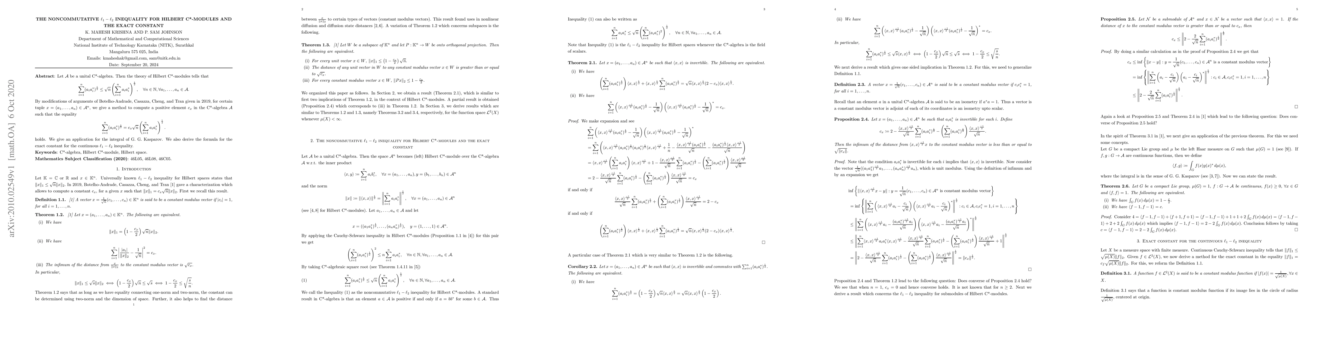 Let $\mathcal{A}$ be a unital C*-algebra. Then the theory of Hilbert C*-modules tells that \begin{align*} \sum_{i=1}^{n}(a_ia_i^*)^\frac{1}{2}\leq \sqrt{n} \left(\sum_{i=1}^{n}a_ia_i^*\right)^\frac{1}{2}, \quad \forall n \in \mathbb{N}, \forall a_1, \dots, a_n \in \mathcal{A}. \end{align*} By modifications of arguments of Botelho-Andrade, Casazza, Cheng, and Tran given in 2019, for certain tuple $x=(a_1, \dots, a_n) \in \mathcal{A}^n$, we give a method to compute a positive element $c_x$ in the C*-algebra $\mathcal{A}$ such that the equality \begin{align*} \sum_{i=1}^{n}(a_ia_i^*)^\frac{1}{2}=c_x \sqrt{n} \left(\sum_{i=1}^{n}a_ia_i^*\right)^\frac{1}{2}. \end{align*} holds. We give an application for the integral of G. G. Kasparov. We also derive the formula for the exact constant for the continuous $\ell_1-\ell_2$ inequality.