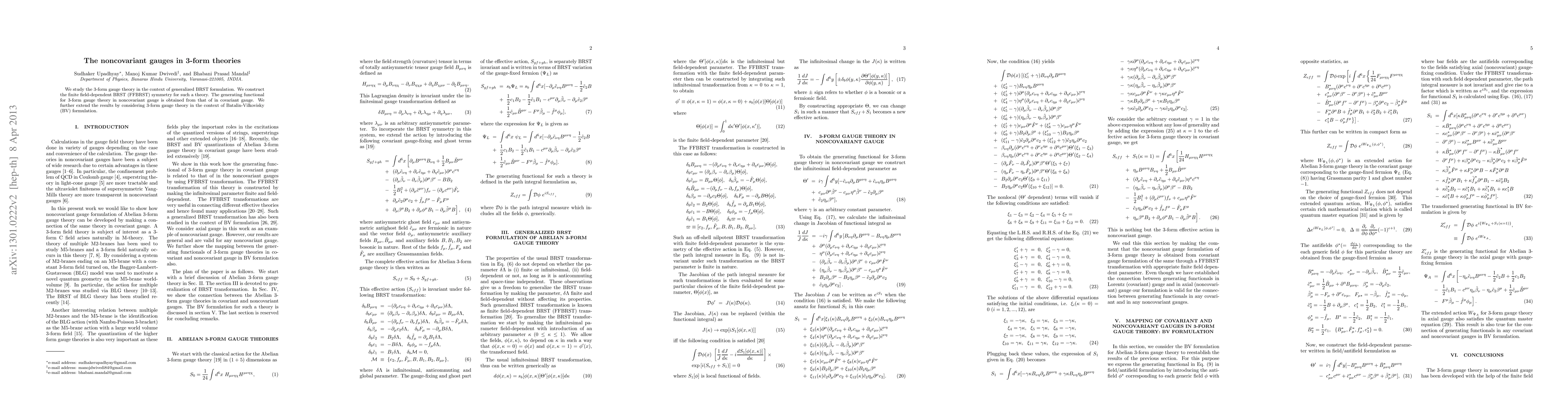 This paper investigates 3-form gauge theory using generalized BRST and FFBRST symmetries, deriving the generating functional for noncovariant gauges from that of covariant gauges. It extends the analysis to the Batalin-Vilkovisky formulation.