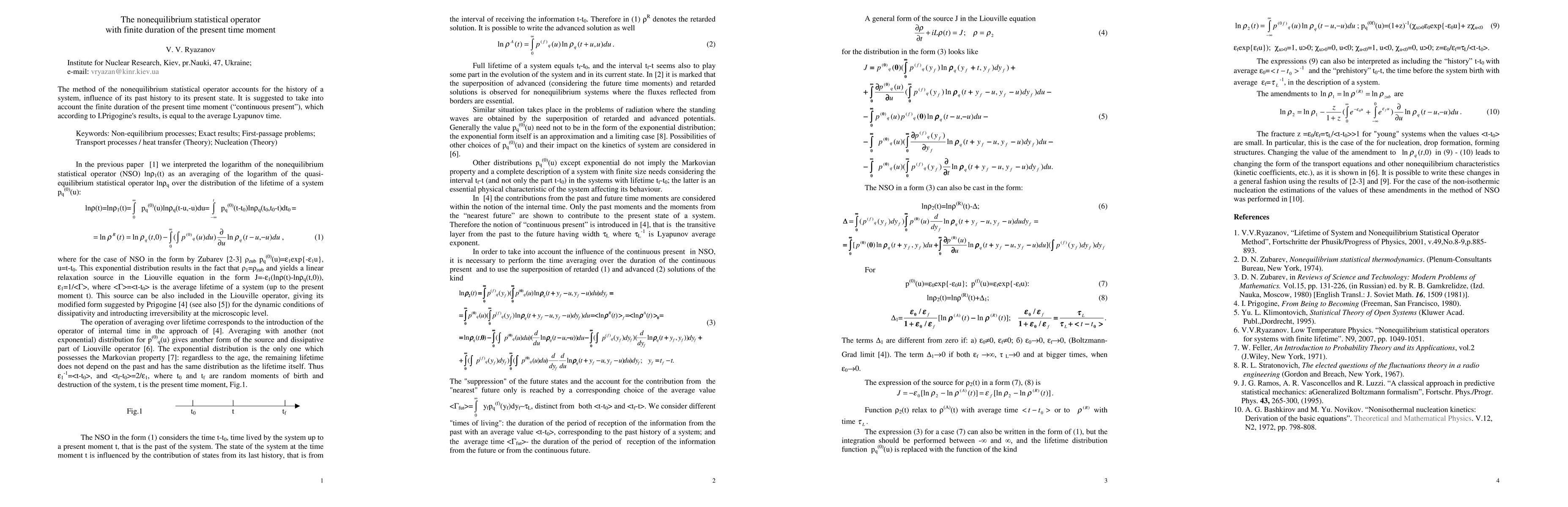 The method of the nonequilibrium statistical operator accounts for the history of a system, influence of its past history to its present state. It is suggested to take into account the finite duration of the present time moment, which according to I.Prigogine's results, is equal to the average Lyapunov time.