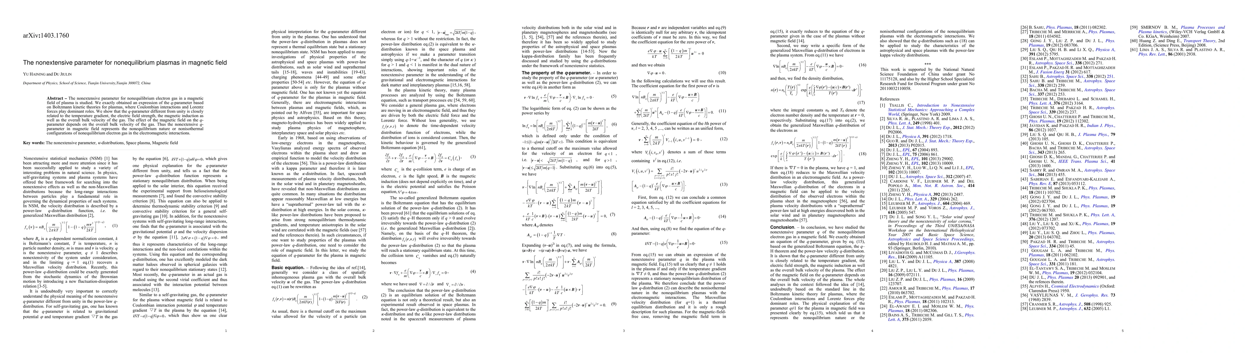 Researchers studied the nonextensive parameter for nonequilibrium plasmas in magnetic fields, finding it's closely related to temperature gradients, electric field strength, and magnetic induction. The study reveals how magnetic fields affect the plasma's behavior in nonisothermal configurations.