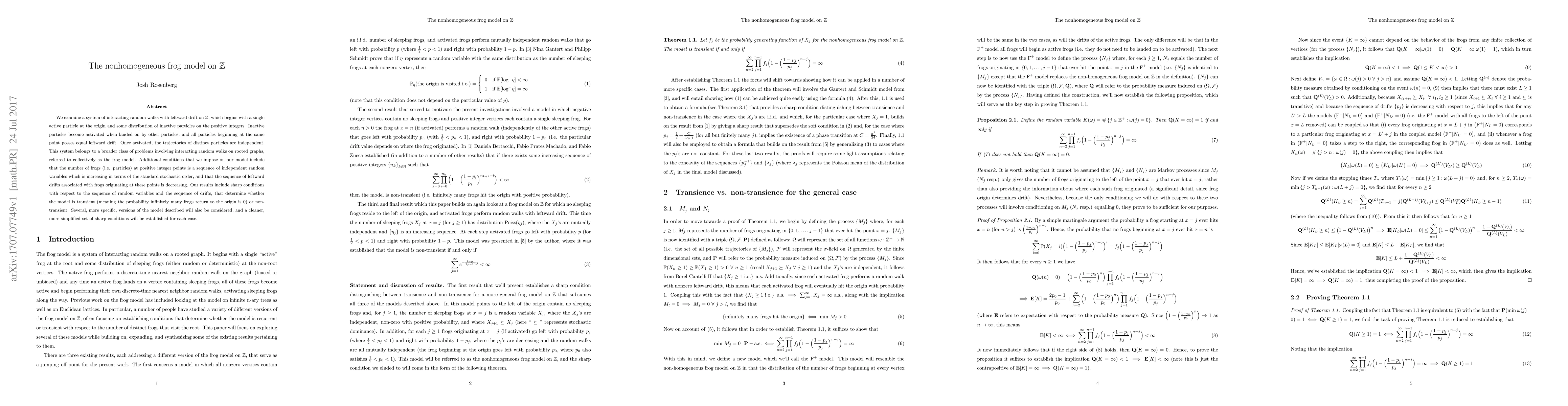 We examine a system of interacting random walks with leftward drift on $\mathbb{Z}$, which begins with a single active particle at the origin and some distribution of inactive particles on the positive integers. Inactive particles become activated when landed on by other particles, and all particles beginning at the same point posses equal leftward drift. Once activated, the trajectories of distinct particles are independent. This system belongs to a broader class of problems involving interacting random walks on rooted graphs, referred to collectively as the frog model. Additional conditions that we impose on our model include that the number of frogs (i.e. particles) at positive integer points is a sequence of independent random variables which is increasing in terms of the standard stochastic order, and that the sequence of leftward drifts associated with frogs originating at these points is decreasing. Our results include sharp conditions with respect to the sequence of random variables and the sequence of drifts, that determine whether the model is transient (meaning the probability infinitely many frogs return to the origin is $0$) or non-transient. Several, more specific, versions of the model described will also be considered, and a cleaner, more simplified set of sharp conditions will be established for each case.