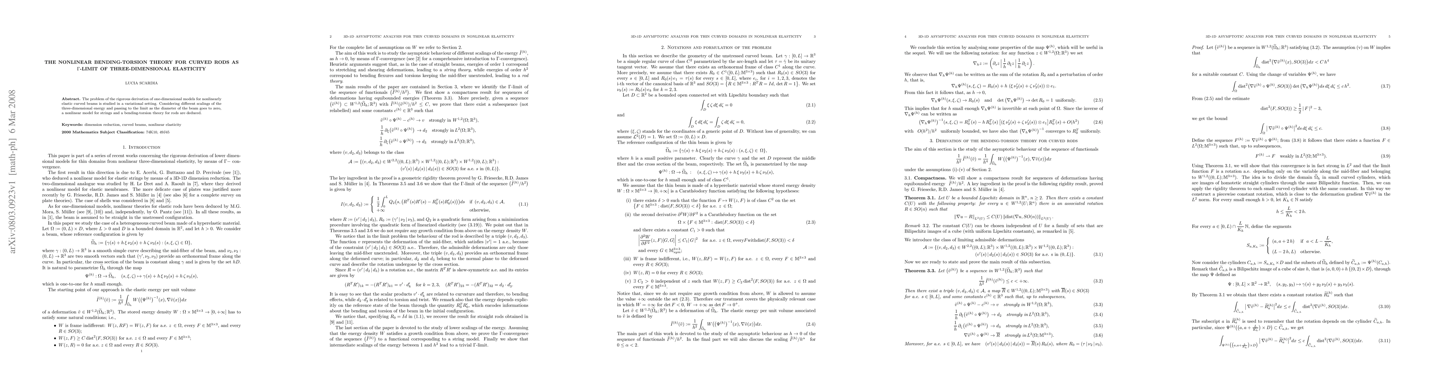 This paper rigorously derives one-dimensional nonlinear models for curved beams from three-dimensional elasticity by taking the limit as the beam's diameter approaches zero, leading to a nonlinear model for strings and a bending-torsion theory for rods.