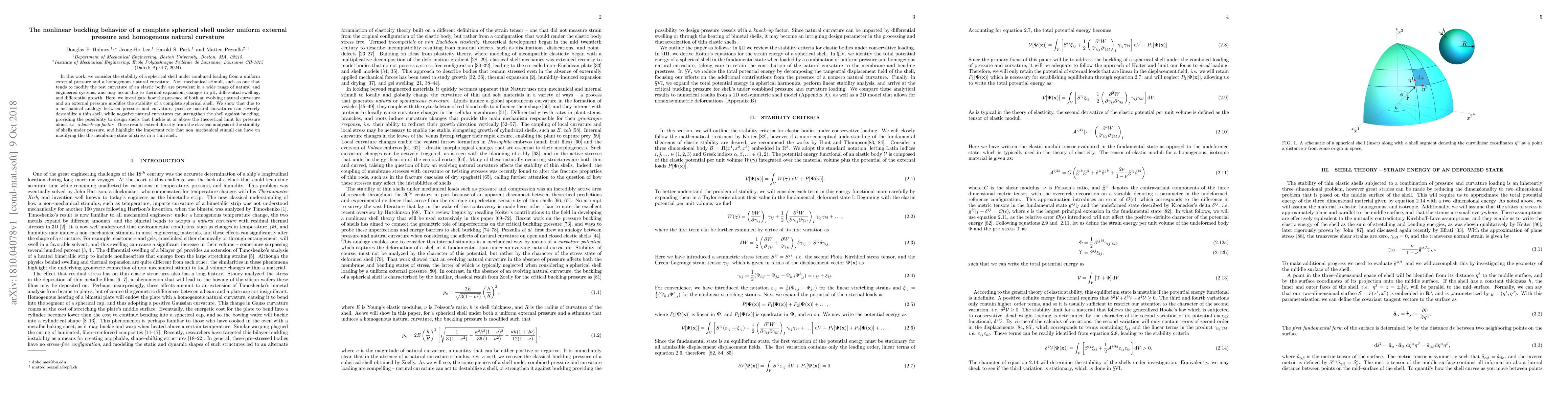 This paper investigates the nonlinear buckling behavior of a spherical shell under uniform external pressure and homogenous natural curvature, demonstrating that positive curvature can destabilize while negative curvature can strengthen the shell against buckling. The findings suggest a design approach to achieve a "knock-up factor" by leveraging natural curvature.