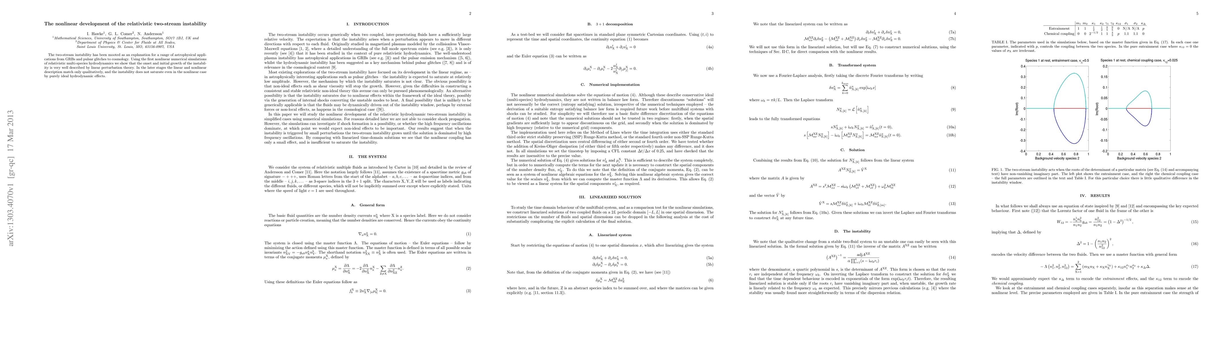 The two-stream instability has been mooted as an explanation for a range of astrophysical applications from GRBs and pulsar glitches to cosmology. Using the first nonlinear numerical simulations of relativistic multi-species hydrodynamics we show that the onset and initial growth of the instability is very well described by linear perturbation theory. In the later stages the linear and nonlinear description match only qualitatively, and the instability does not saturate even in the nonlinear case by purely ideal hydrodynamic effects.