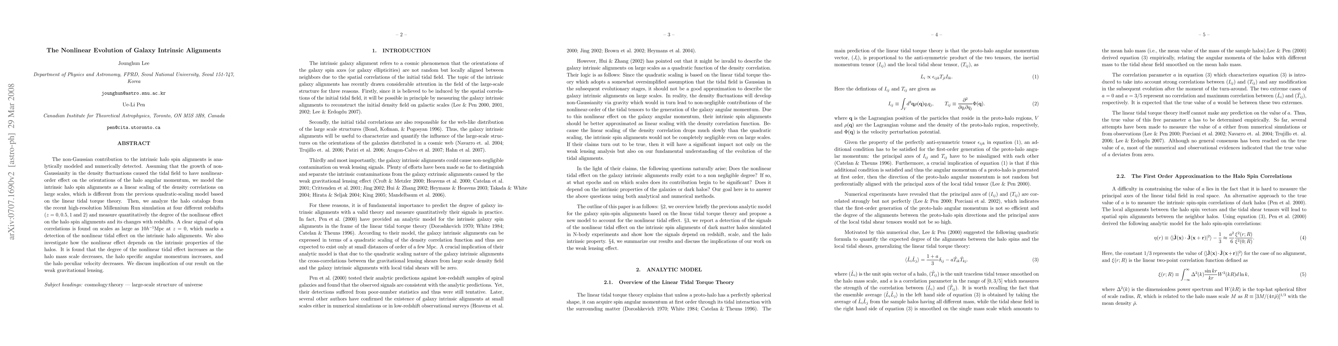 This paper models and detects the nonlinear evolution of intrinsic galaxy halo spin alignments, finding a non-Gaussian contribution to the alignments that differs from previous linear models. The study reveals a clear nonlinear tidal effect on halo spin correlations at large scales, which varies with redshift and halo properties, suggesting implications for weak gravitational lensing.