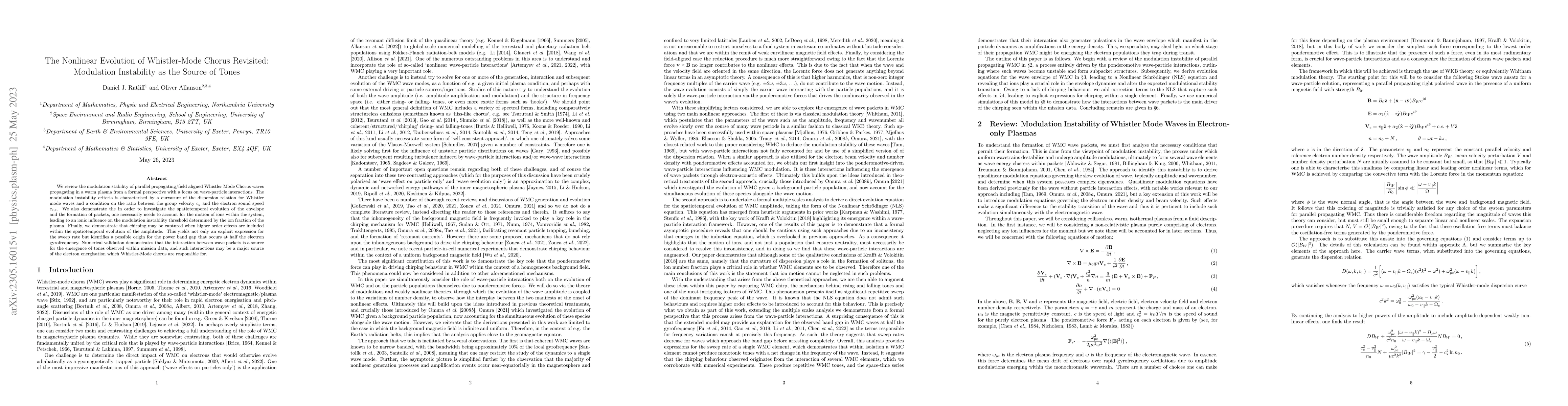 This paper revisits the nonlinear evolution of Whistler-Mode Chorus waves, identifying modulation instability as a source for wave packet tones. It highlights the role of wave-particle interactions, ion motion, and higher order effects in determining the modulation instability threshold and the emergence of tones, supported by numerical validation.