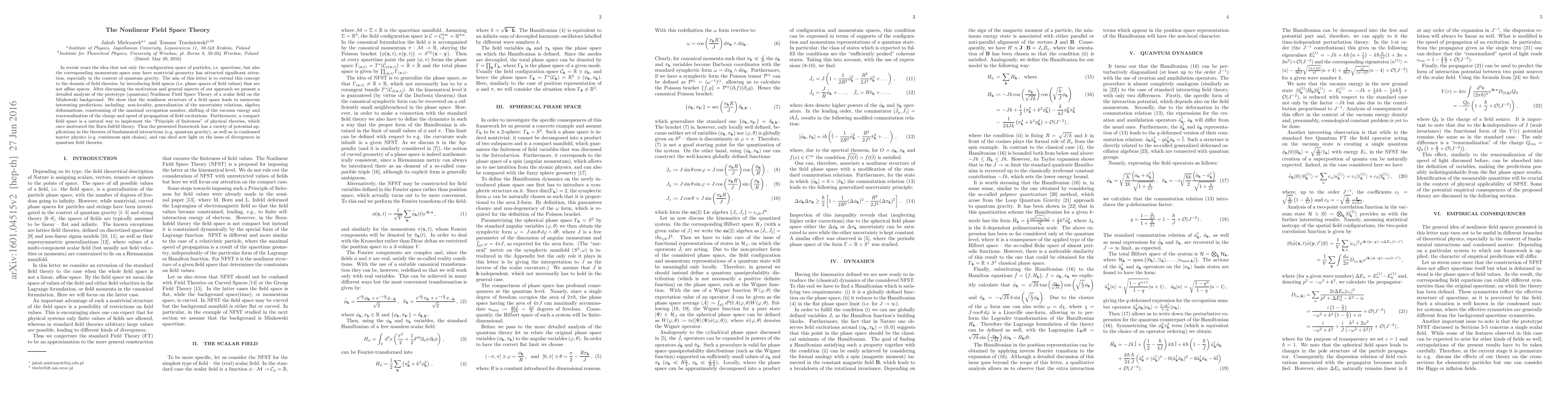 In recent years the idea that not only the configuration space of particles, i.e. spacetime, but also the corresponding momentum space may have nontrivial geometry has attracted significant attention, especially in the context of quantum gravity. The aim of this letter is to extend this concept to the domain of field theories, by introducing field spaces (i.e. phase spaces of field values) that are not affine spaces. After discussing the motivation and general aspects of our approach we present a detailed analysis of the prototype (quantum) Nonlinear Field Space Theory of a scalar field on the Minkowski background. We show that the nonlinear structure of a field space leads to numerous interesting predictions, including: non-locality, generalization of the uncertainty relations, algebra deformations, constraining of the maximal occupation number, shifting of the vacuum energy and renormalization of the charge and speed of propagation of field excitations. Furthermore, a compact field space is a natural way to implement the "Principle of Finiteness" of physical theories, which once motivated the Born-Infeld theory. Thus the presented framework has a variety of potential applications in the theories of fundamental interactions (e.g. quantum gravity), as well as in condensed matter physics (e.g. continuous spin chains), and can shed new light on the issue of divergences in quantum field theories.