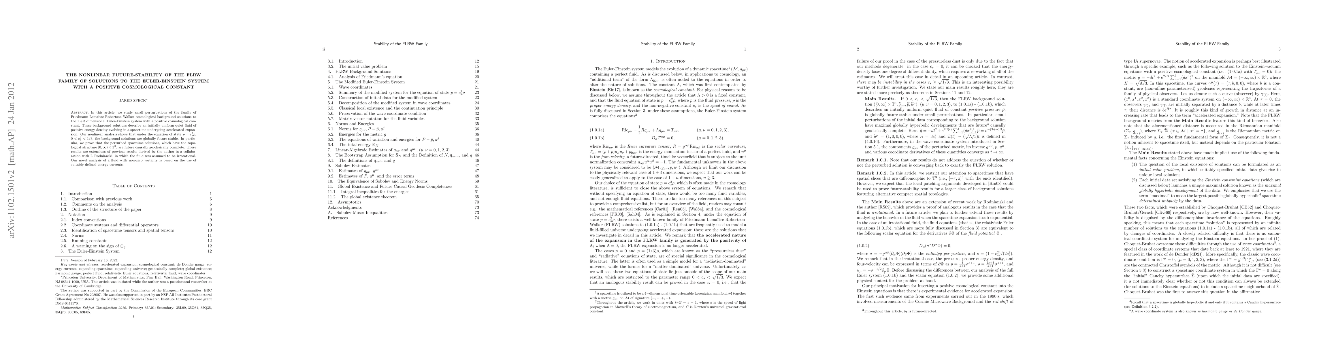 This paper investigates the stability of Friedmann-Lemaître-Robertson-Walker (FLRW) cosmological solutions under small perturbations, showing that they remain globally future-stable for a fluid with a positive cosmological constant and non-zero vorticity. The analysis proves the causal geodesic completeness of perturbed spacetime solutions.