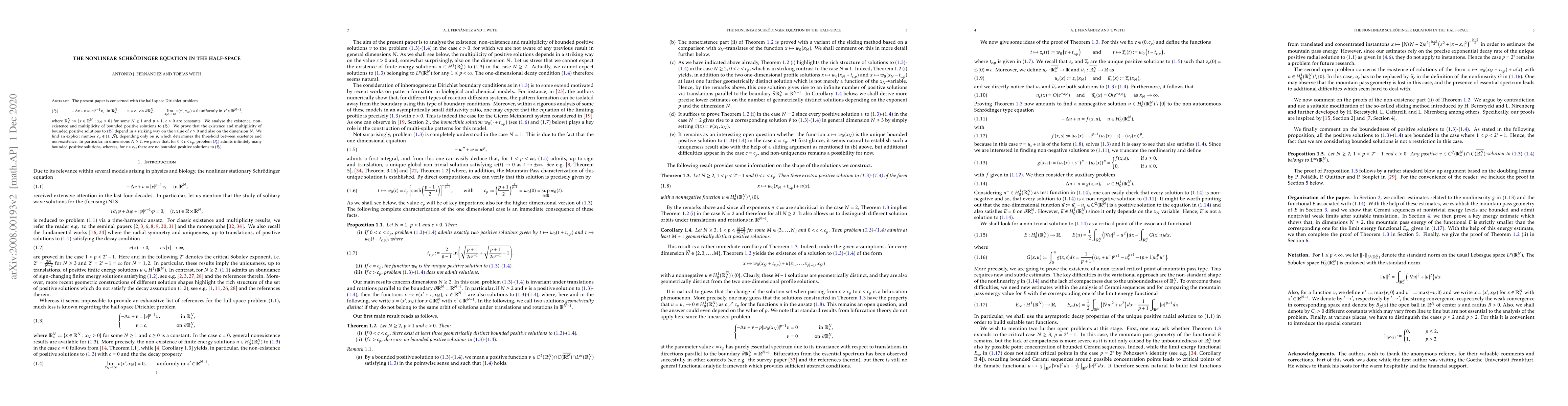This research investigates solutions to a nonlinear Schrödinger equation in a half-space, revealing that the existence of positive solutions depends on a critical constant related to the boundary value and the space dimension. Specifically, for certain boundary values, infinitely many solutions exist, while beyond a threshold, no solutions are found.