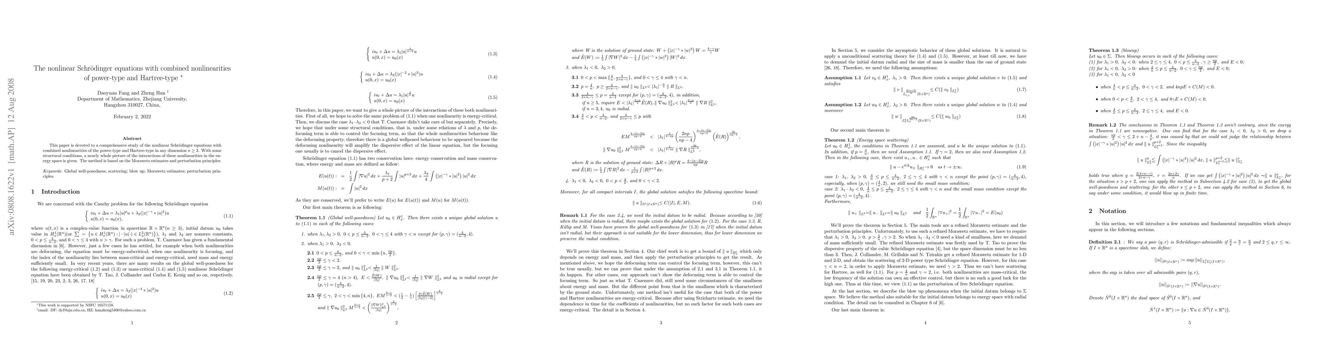 The paper employs Morawetz estimates and perturbation principles to study nonlinear Schrödinger equations with combined nonlinearities of power-type and Hartree-type in dimensions n ≥ 3, providing a nearly complete picture of the interactions in the energy space.