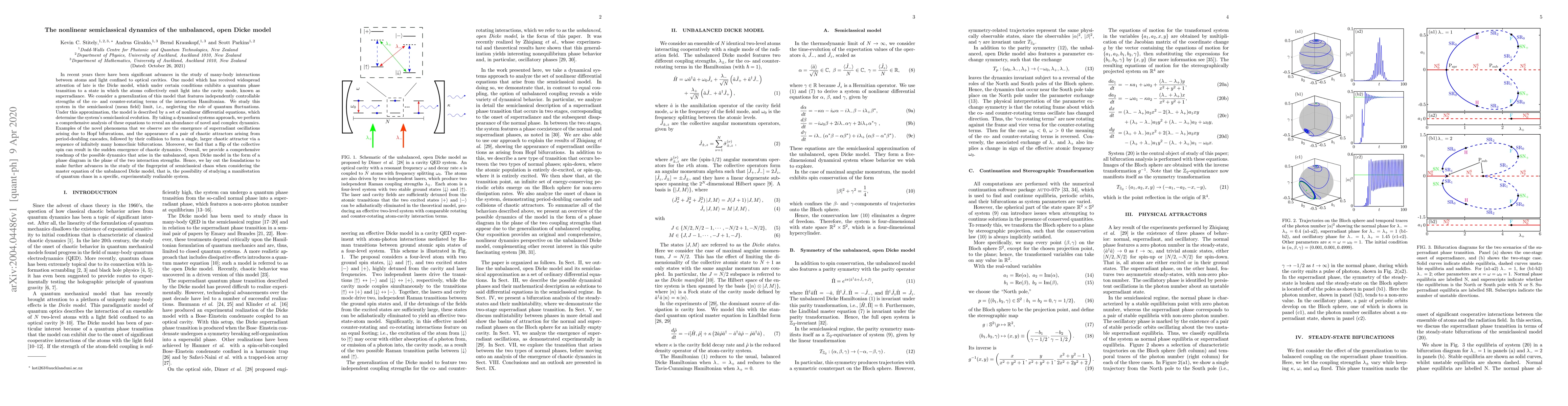 This paper investigates the nonlinear semiclassical dynamics of an unbalanced, open Dicke model, revealing complex phenomena such as superradiant oscillations, chaotic attractors, and bifurcations. The study provides a phase diagram outlining the system's dynamics based on interaction strengths, laying the groundwork for exploring quantum chaos in experimentally feasible systems.