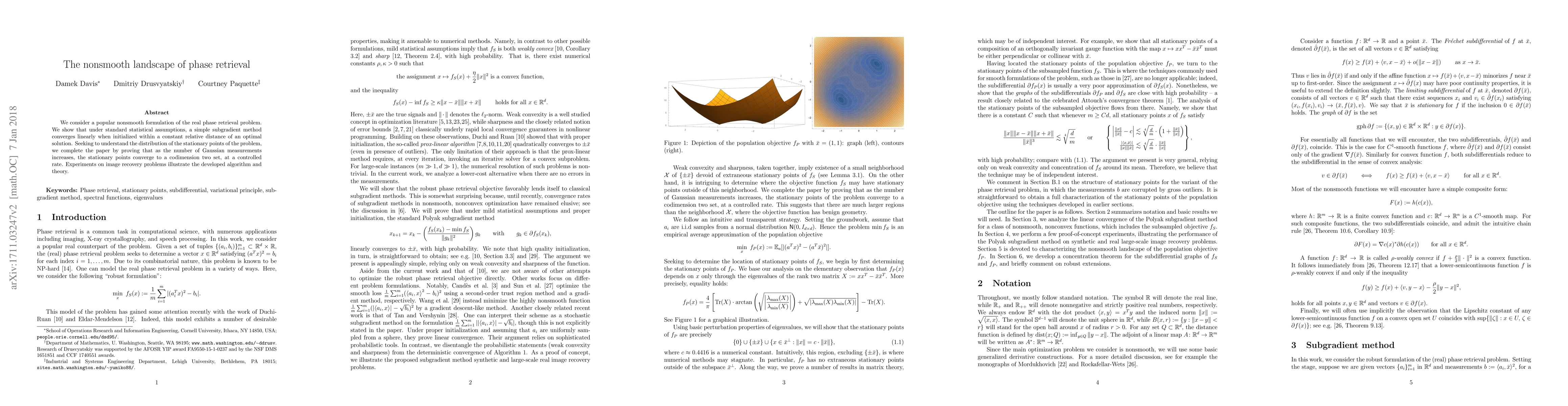 A study shows that a simple optimization method converges linearly to optimal solutions for phase retrieval problems under certain conditions, and as more measurements are taken, the stationary points converge to specific sets.