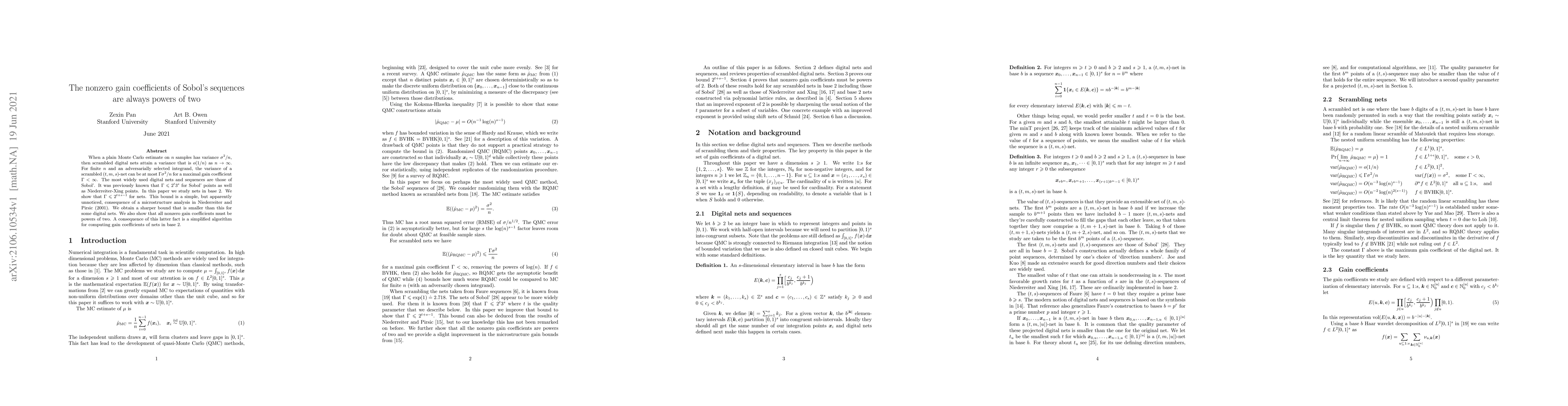 The research analyzes Sobol's sequences in base 2, employing a microstructure analysis and digital net construction techniques to derive bounds on gain coefficients.