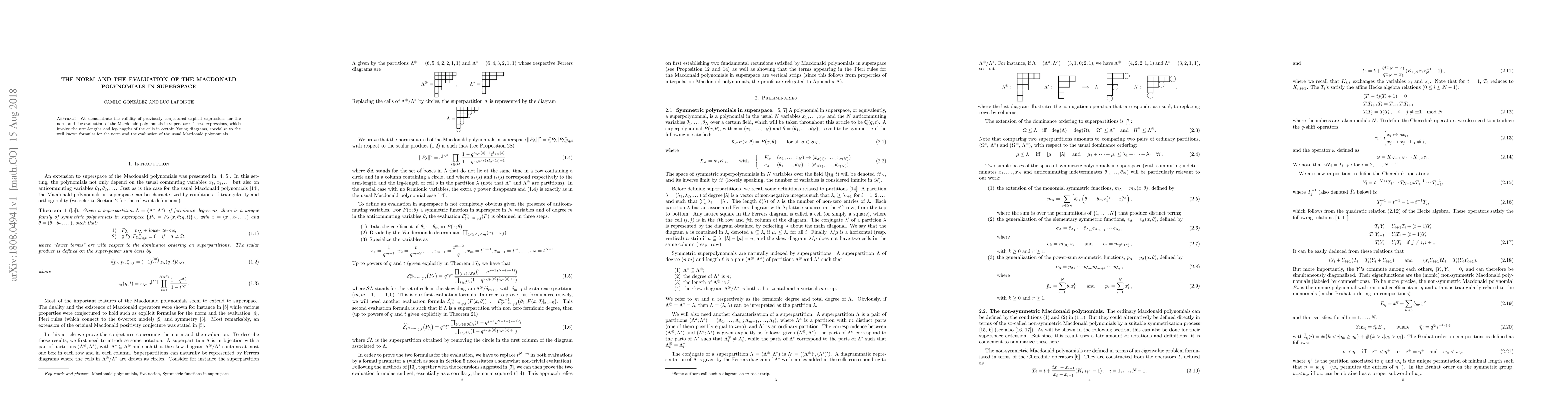Researchers validate explicit expressions for Macdonald polynomials in superspace, showing they simplify to known formulas for the norm and evaluation of usual Macdonald polynomials.