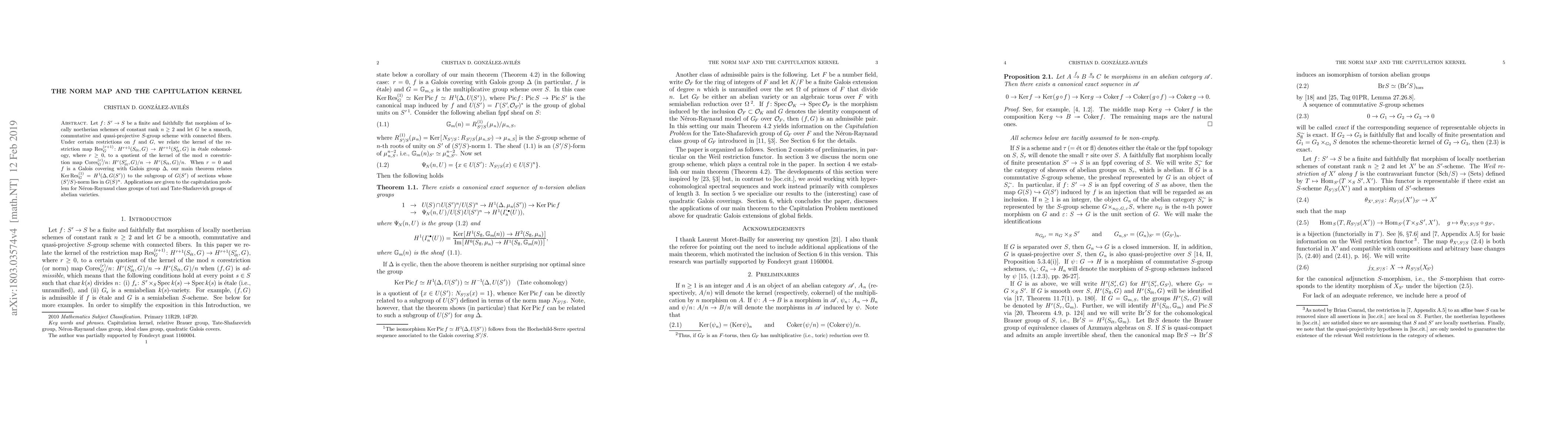 This paper explores the relationship between the kernel of the restriction map in \'etale cohomology and the mod n corestriction map under a finite and faithfully flat morphism of schemes. The main theorem connects the kernel of the restriction map to the norm capitulation kernel, with applications to the Neron-Raynaud class groups and Tate-Shafarevich groups.