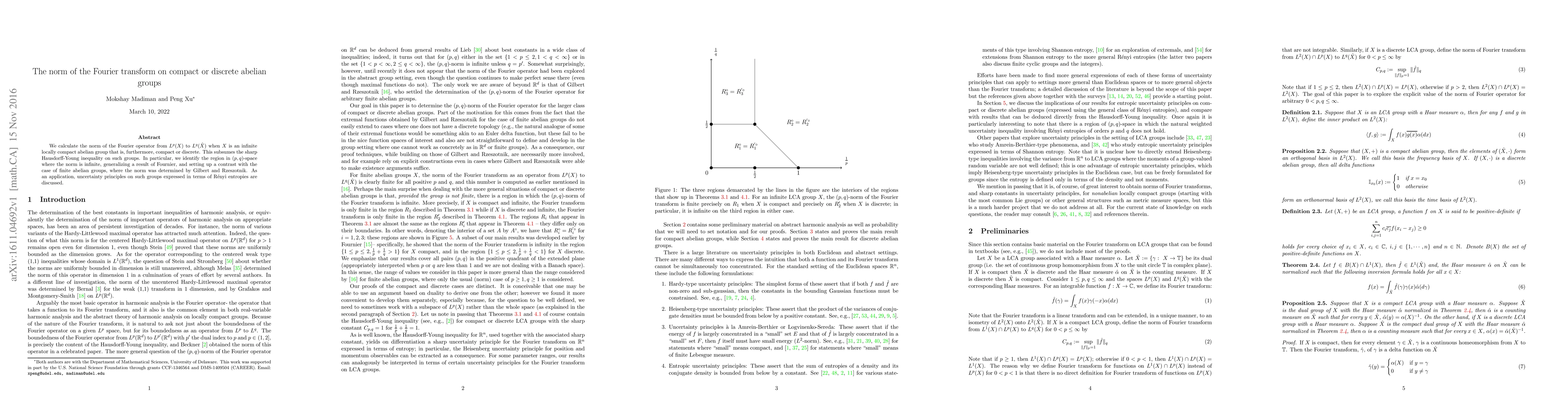 This paper calculates the norm of the Fourier transform on compact or discrete abelian groups, identifying the regions where the norm is infinite and generalizing previous results. It also applies these findings to discuss uncertainty principles in terms of Rényi entropies.