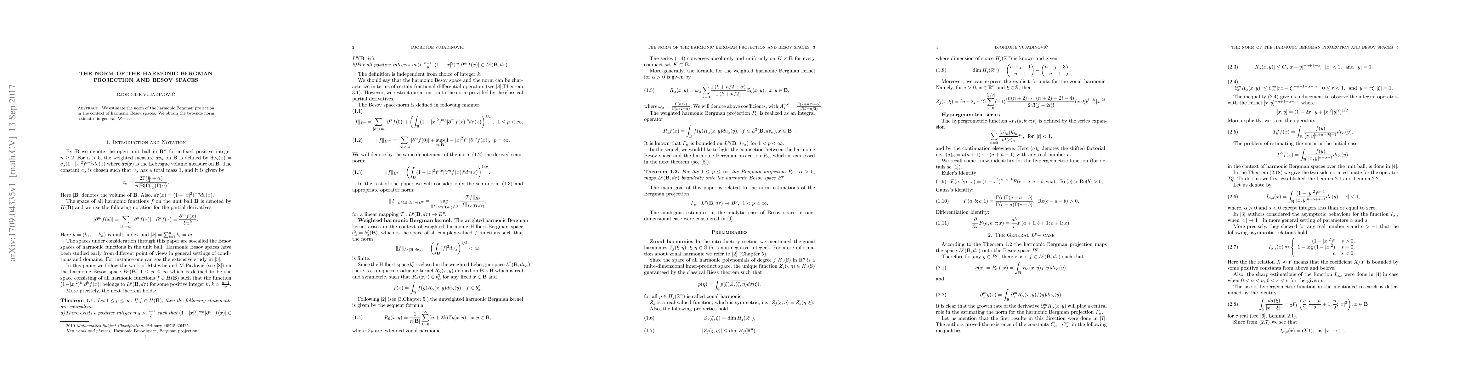 Summary: This paper provides two-sided norm estimates for the harmonic Bergman projection within the framework of harmonic Besov spaces, establishing general Lp-case results. The findings contribute to the understanding of function spaces in harmonic analysis.