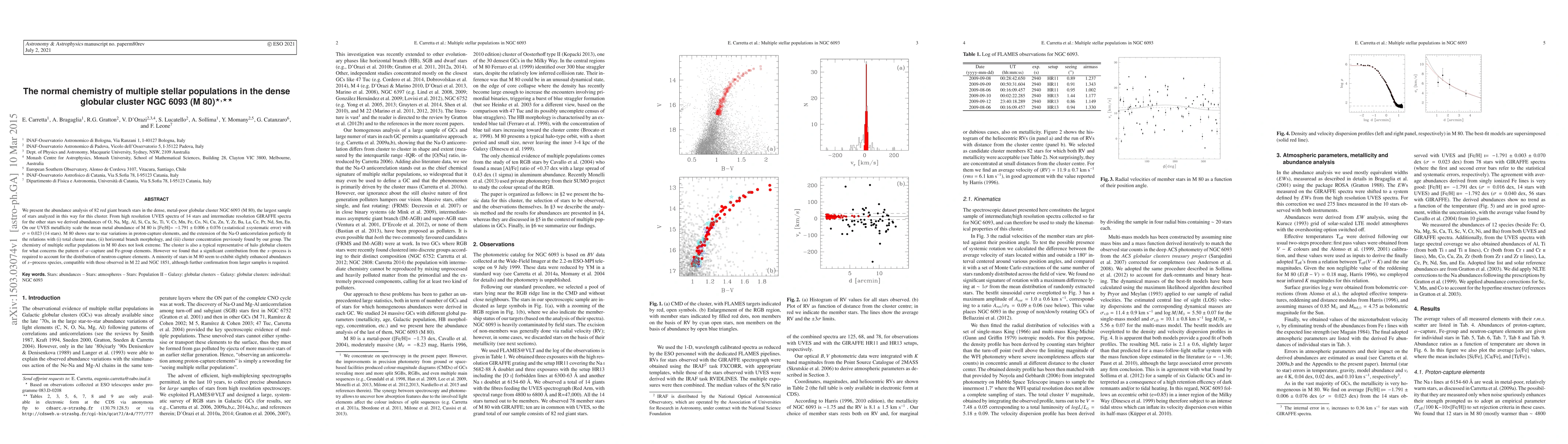We present the abundance analysis of 82 red giant branch stars in the dense, metal-poor globular cluster NGC 6093 (M 80), the largest sample of stars analyzed in this way for this cluster. From high resolution UVES spectra of 14 stars and intermediate resolution GIRAFFE spectra for the other stars we derived abundances of O, Na, Mg, Al, Si, Ca, Sc, Ti, V, Cr, Mn, Fe, Co, Ni, Cu, Zn, Y, Zr, Ba, La, Ce, Pr, Nd, Sm, Eu. On our UVES metallicity scale the mean metal abundance of M 80 is [Fe/H]=-1.791+/-0.006+/-0.076 (+/-statistical +/-systematic error) with rms=0.023 (14 stars). M 80 shows star to star variations in proton-capture elements, and the extension of the Na-O anticorrelation perfectly fit the relations with (i) total cluster mass, (ii) horizontal branch morphology, and (iii) cluster concentration previously found by our group. The chemistry of multiple stellar populations in M 80 does not look extreme. The cluster is also a typical representative of halo globular clusters for what concerns the pattern of alpha-capture and Fe-group elements. However we found that a significant contribution from the s-process is required to account for the distribution of neutron-capture elements. A minority of stars in M 80 seem to exhibit slightly enhanced abundances of s-process species, compatible with those observed in M 22 and NGC 1851, although further confirmation from larger samples is required.
