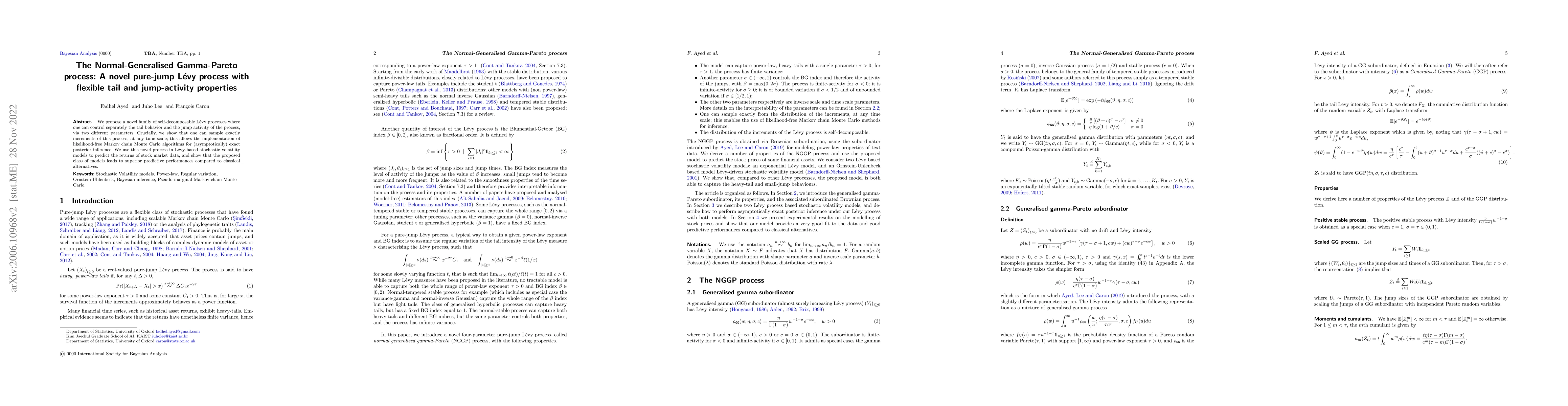 This paper introduces a new self-decomposable pure-jump Lévy process, the Normal-Generalised Gamma-Pareto process, which allows independent control of tail behavior and jump activity. The authors demonstrate exact sampling of process increments, enabling advanced inference methods, and apply it to improve predictive performance in Lévy-based stochastic volatility models for stock market returns.