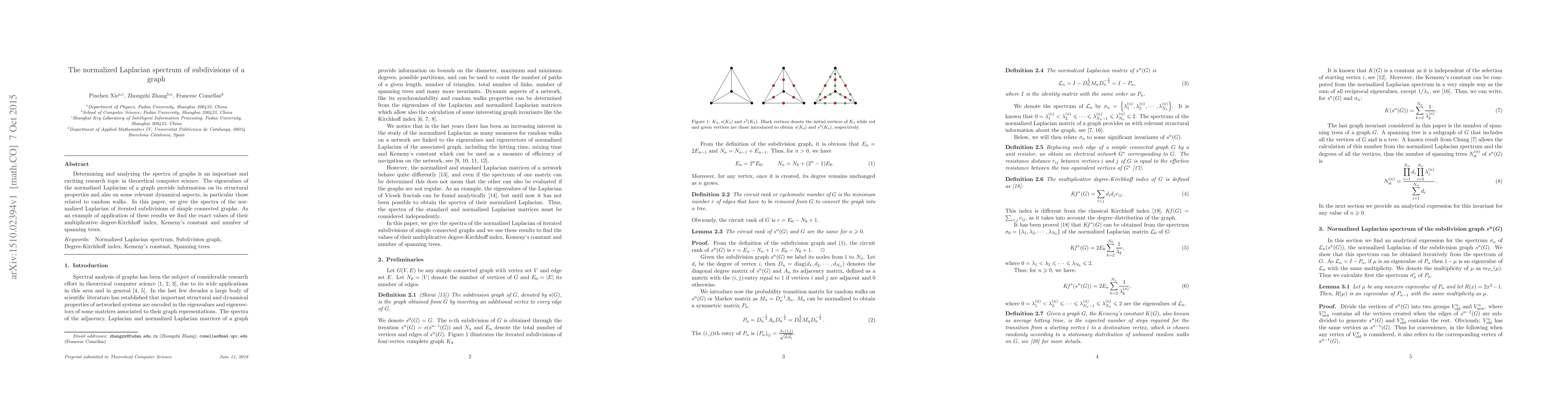 This paper determines the spectra of the normalized Laplacian for iterated subdivisions of simple connected graphs, providing insights into their structural and dynamical properties. It also calculates the exact values of their multiplicative degree-Kirchhoff index, Kemeny's constant, and number of spanning trees.
