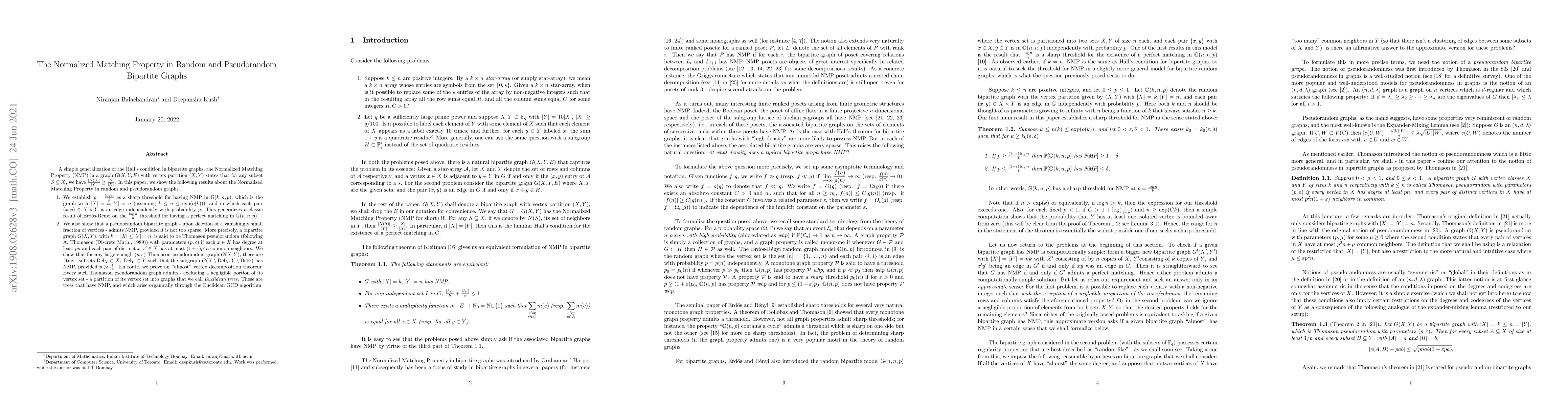 A simple generalization of the Hall's condition in bipartite graphs, the Normalized Matching Property (NMP) in a graph $G(X,Y,E)$ with vertex partition $(X,Y)$ states that for any subset $S\subseteq X$, we have $\frac{|N(S)|}{|Y|}\ge\frac{|S|}{|X|}$. In this paper, we show the following results about having the Normalized Matching Property in random and pseudorandom graphs. 1. We establish $p=\frac{\log n}{k}$ as a sharp threshold for having NMP in $\mathbb{G}(k,n,p)$, which is the graph with $|X|=k,|Y|=n$ (assuming $k\le n\leq \exp(o(k))$), and in which each pair $(x,y)\in X\times Y$ is an edge independently with probability $p$. This generalizes a classic result of Erd\H{o}s-R\'enyi on the $\frac{\log n}{n}$ threshold for having a perfect matching in $\mathbb{G}(n,n,p)$. 2. We also show that a pseudorandom bipartite graph - upon deletion of a vanishingly small fraction of vertices - admits NMP, provided it is not too sparse. More precisely, a bipartite graph $G(X,Y)$, with $k=|X|\le |Y|=n$, is said to be Thomason pseudorandom (following A. Thomason (Discrete Math., 1989)) with parameters $(p,\varepsilon)$ if each $x\in X$ has degree at least $pn$ and each pair of distinct $x, x'\in X$ has at most $(1+\varepsilon)p^2n$ common neighbors. We show that for any large enough $(p,\varepsilon)$-Thomason pseudorandom graph $G(X,Y)$, there are "tiny" subsets $\mathrm{Del}_X\subset X, \ \mathrm{Del}_Y\subset Y$ such that the subgraph $G(X\setminus \mathrm{Del}_X,Y\setminus \mathrm{Del}_Y)$ has NMP, provided $p \gg\tfrac{1}{k}$. En route, we prove an "almost" vertex decomposition theorem: Every such Thomason pseudorandom graph admits - excluding a negligible portion of its vertex set - a partition of its vertex set into graphs that we call Euclidean trees. These are trees that have NMP, and which arise organically through the Euclidean GCD algorithm.