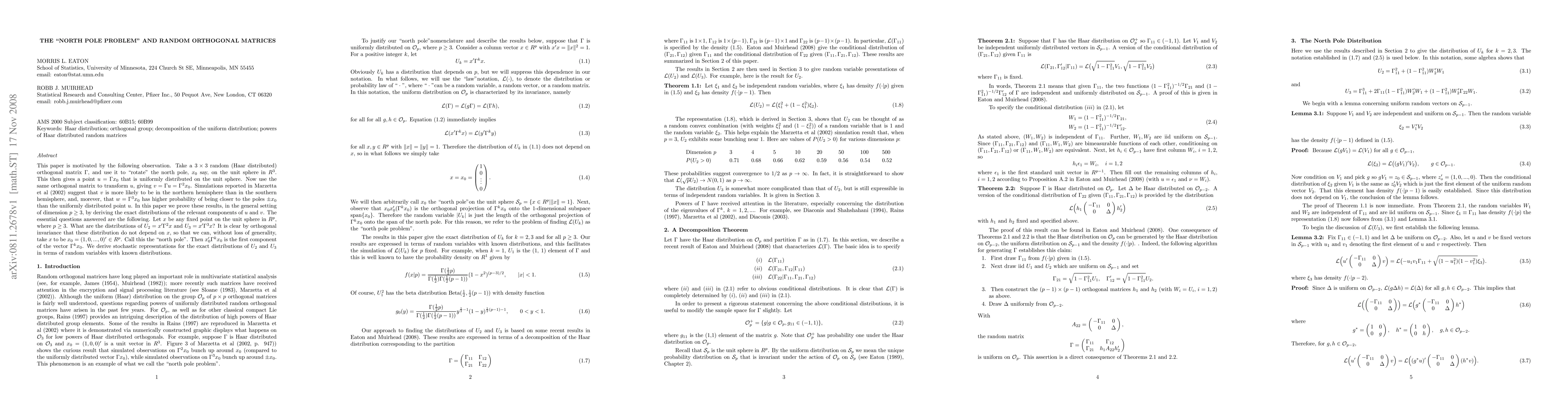 This paper is motivated by the following observation. Take a 3 x 3 random (Haar distributed) orthogonal matrix $\Gamma$, and use it to "rotate" the north pole, $x_0$ say, on the unit sphere in $R^3$. This then gives a point $u=\Gamma x_0$ that is uniformly distributed on the unit sphere. Now use the same orthogonal matrix to transform u, giving $v=\Gamma u=\Gamma^2 x_0$. Simulations reported in Marzetta et al (2002) suggest that v is more likely to be in the northern hemisphere than in the southern hemisphere, and, morever, that $w=\Gamma^3 x_0$ has higher probability of being closer to the poles $\pm x_0$ than the uniformly distributed point u. In this paper we prove these results, in the general setting of dimension $p\ge 3$, by deriving the exact distributions of the relevant components of u and v. The essential questions answered are the following. Let x be any fixed point on the unit sphere in $R^p$, where $p\ge 3$. What are the distributions of $U_2=x'\Gamma^2 x$ and $U_3=x'\Gamma^3 x$? It is clear by orthogonal invariance that these distribution do not depend on x, so that we can, without loss of generality, take x to be $x_0=(1,0,...,0)'\in R^p$. Call this the "north pole". Then $x_0'\Gamma^ k x_0$ is the first component of the vector $\Gamma^k x_0$. We derive stochastic representations for the exact distributions of $U_2$ and $U_3$ in terms of random variables with known distributions.
