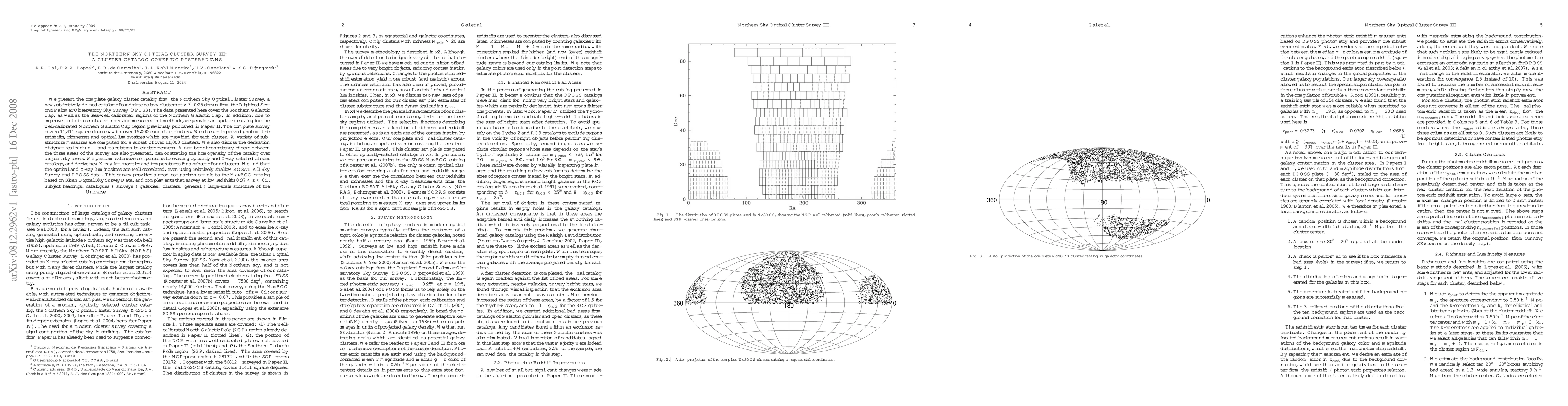 areas of the survey are also presented, demonstrating the homogeneity of the