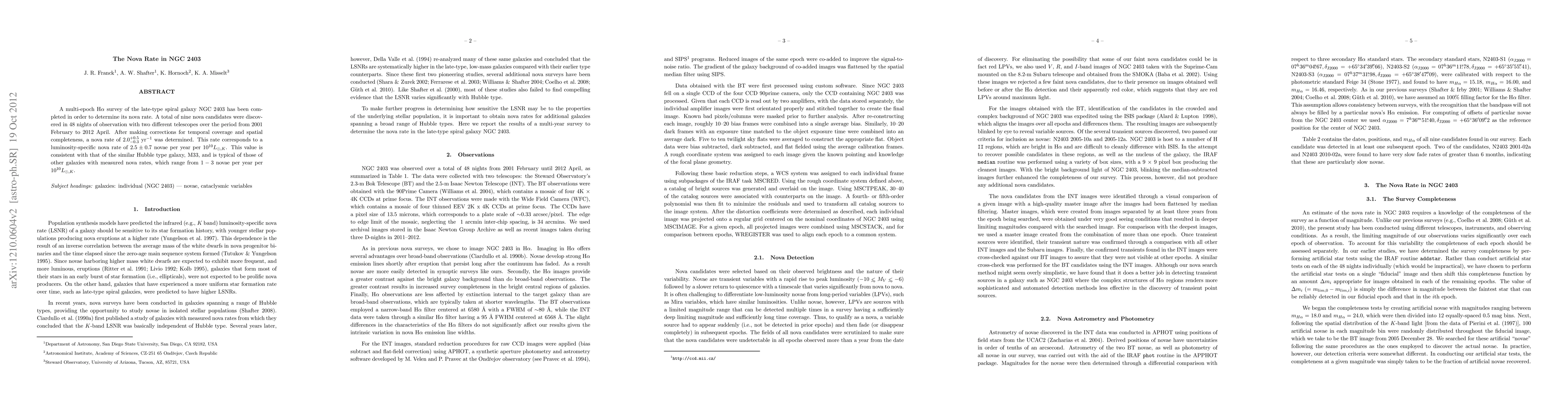 The study of NGC 2403 reveals a nova rate of 2.0 per year, consistent with other galaxies, and provides new insights into the frequency of novae in spiral galaxies.