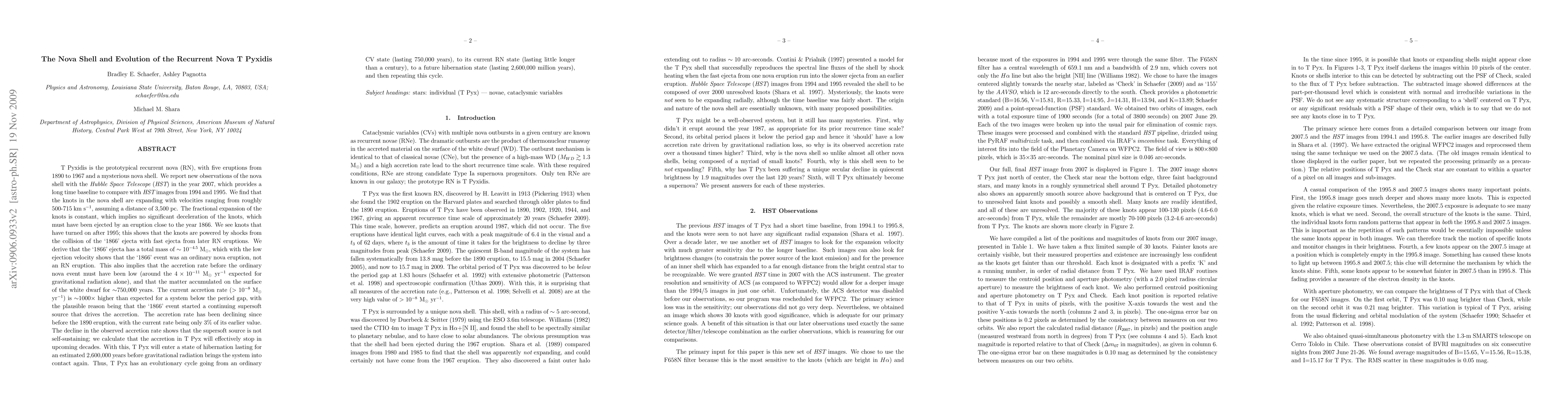 Astronomers observed the expanding knots of T Pyxidis, a recurrent nova, to find that they were ejected in 1866 and powered by later eruptions, revealing a cyclical evolutionary pattern from ordinary nova state to RN state and eventual hibernation.