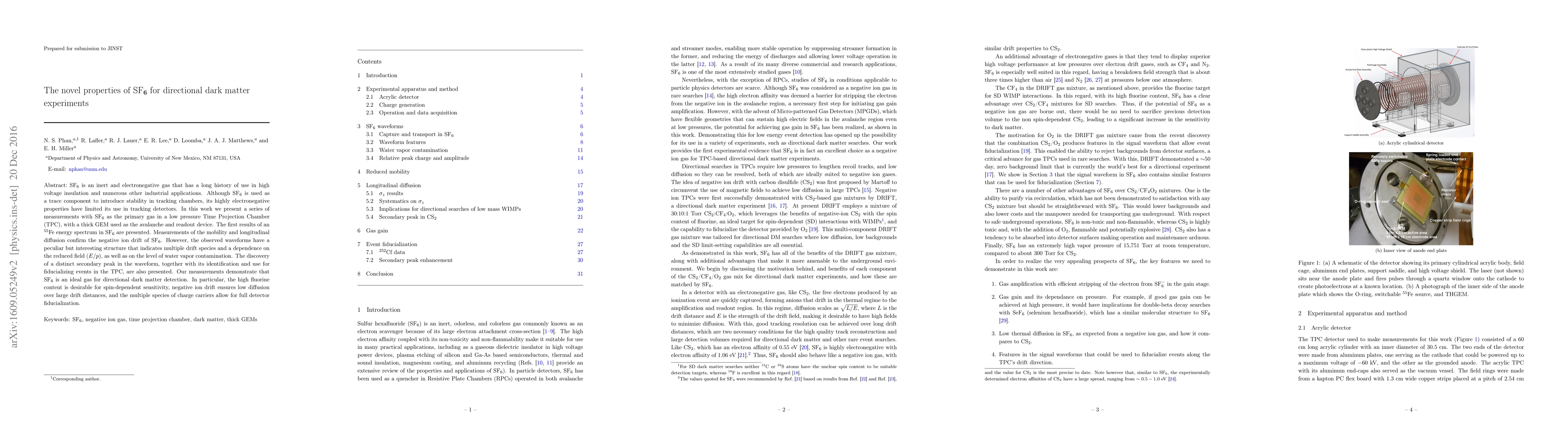 Researchers have discovered that SF$_6$ is an ideal gas for directional dark matter detection due to its negative ion drift and multiple species of charge carriers, making it suitable for spin-dependent sensitivity.