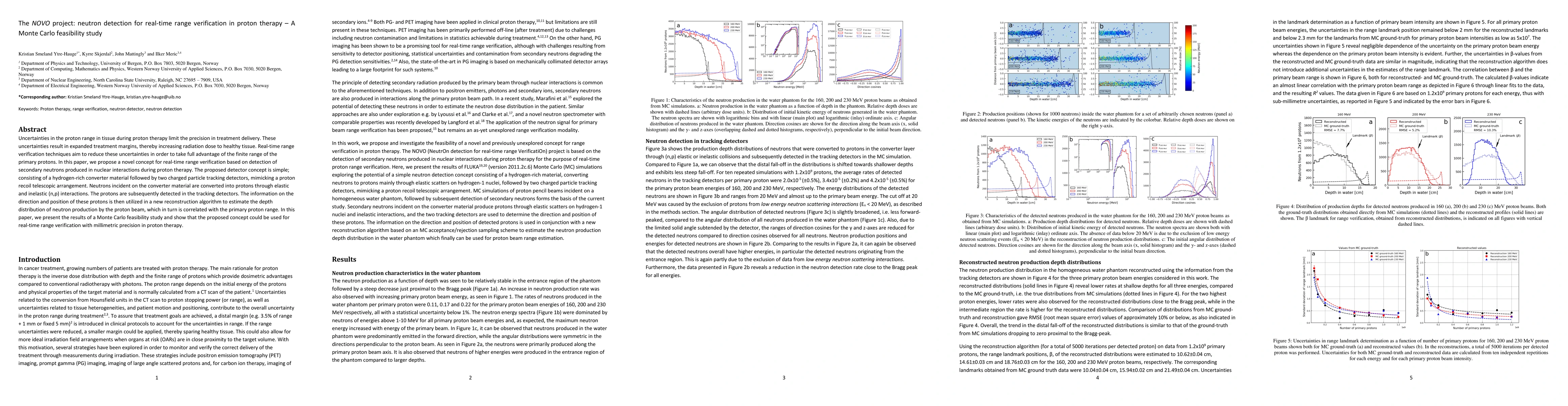 This paper proposes a novel neutron detection method for real-time range verification in proton therapy, aiming to reduce uncertainties in proton range. The concept involves a hydrogen-rich converter and charged particle tracking detectors, with a Monte Carlo study demonstrating its feasibility for millimetric precision.