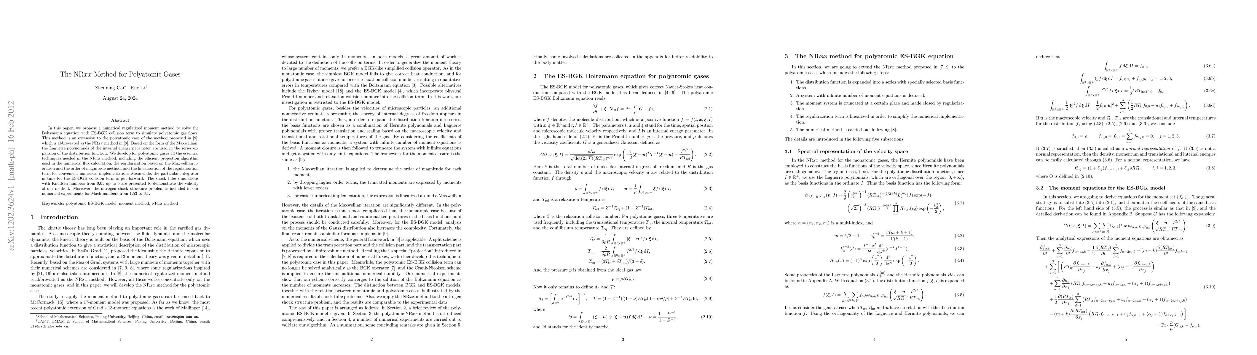 This paper introduces a numerical regularized moment method (NRxx) to simulate polyatomic gas flows using the Boltzmann equation with ES-BGK collision term. It extends previous techniques to include Laguerre polynomials for internal energy, and presents efficient algorithms for numerical flux, regularization, and time integration, validated through shock tube simulations and nitrogen shock structure problems.