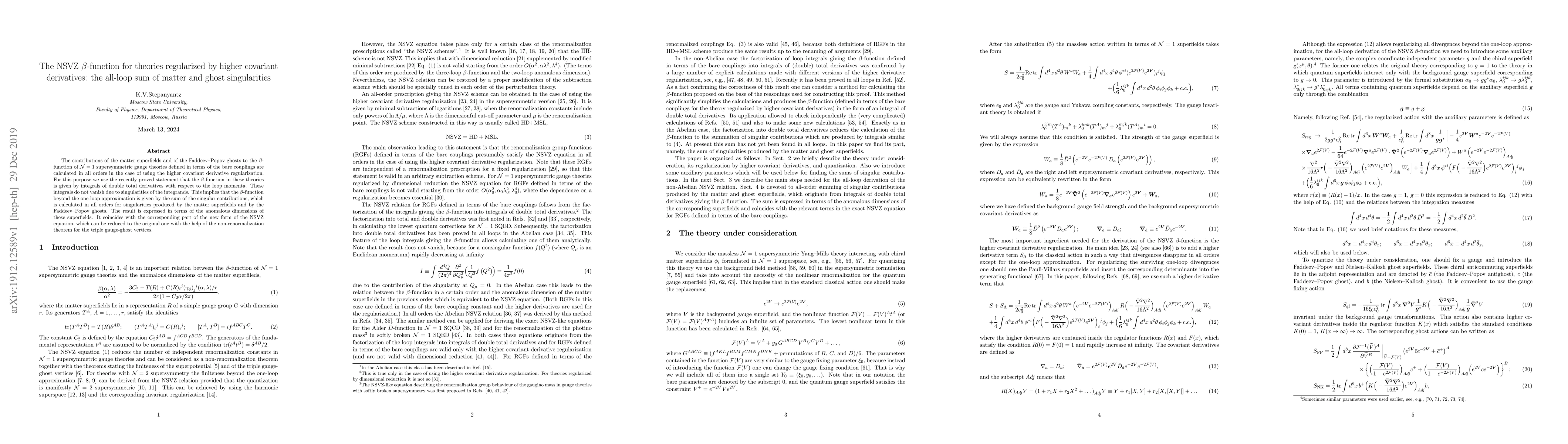 The contributions of the matter superfields and of the Faddeev--Popov ghosts to the $\beta$-function of ${\cal N}=1$ supersymmetric gauge theories defined in terms of the bare couplings are calculated in all orders in the case of using the higher covariant derivative regularization. For this purpose we use the recently proved statement that the $\beta$-function in these theories is given by integrals of double total derivatives with respect to the loop momenta. These integrals do not vanish due to singularities of the integrands. This implies that the $\beta$-function beyond the one-loop approximation is given by the sum of the singular contributions, which is calculated in all orders for singularities produced by the matter superfields and by the Faddeev--Popov ghosts. The result is expressed in terms of the anomalous dimensions of these superfields. It coincides with the corresponding part of the new form of the NSVZ equation, which can be reduced to the original one with the help of the non-renormalization theorem for the triple gauge-ghost vertices.