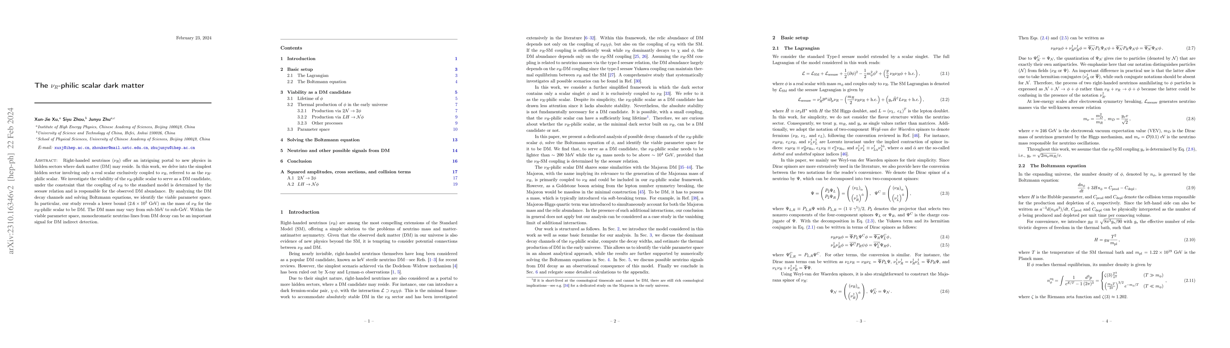 Right-handed neutrinos ($\nu_{R}$) offer an intriguing portal to new physics in hidden sectors where dark matter (DM) may reside. In this work, we delve into the simplest hidden sector involving only a real scalar exclusively coupled to $\nu_{R}$, referred to as the $\nu_{R}$-philic scalar. We investigate the viability of the $\nu_{R}$-philic scalar to serve as a DM candidate, under the constraint that the coupling of $\nu_{R}$ to the standard model is determined by the seesaw relation and is responsible for the observed DM abundance. By analyzing the DM decay channels and solving Boltzmann equations, we identify the viable parameter space. In particular, our study reveals a lower bound ($2.6\times10^{5}$ GeV) on the mass of $\nu_{R}$ for the $\nu_{R}$-philic scalar to be DM. The DM mass may vary from sub-MeV to sub-GeV. Within the viable parameter space, monochromatic neutrino lines from DM decay can be an important signal for DM indirect detection.