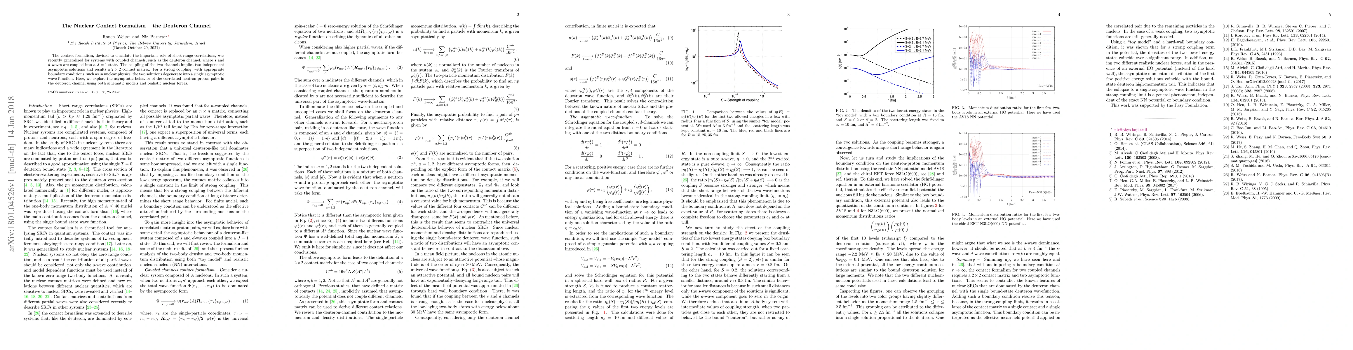 The contact formalism, devised to elucidate the important role of short-range correlations, was recently generalized for systems with coupled channels, such as the deuteron channel, where s and d waves are coupled into a $J=1$ state. The coupling of the two channels implies two independent asymptotic solutions and results a 2x2 contact matrix. For a strong coupling, with appropriate boundary conditions, such as in nuclear physics, the two solutions degenerate into a single asymptotic wave function. Here, we explore the asymptotic behavior of the correlated neutron-proton pairs in the deuteron channel using both schematic models and realistic nuclear forces.