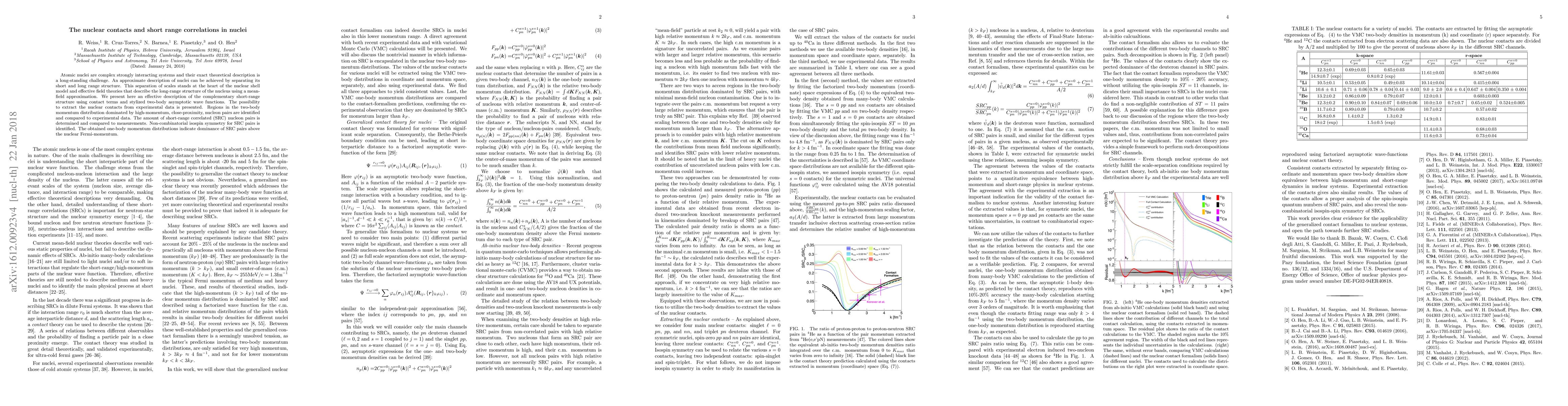 Atomic nuclei are complex strongly interacting systems and their exact theoretical description is a long-standing challenge. An approximate description of nuclei can be achieved by separating its short and long range structure. This separation of scales stands at the heart of the nuclear shell model and effective field theories that describe the long-range structure of the nucleus using a mean- field approximation. We present here an effective description of the complementary short-range structure using contact terms and stylized two-body asymptotic wave functions. The possibility to extract the nuclear contacts from experimental data is presented. Regions in the two-body momentum distribution dominated by high-momentum, close-proximity, nucleon pairs are identified and compared to experimental data. The amount of short-range correlated (SRC) nucleon pairs is determined and compared to measurements. Non-combinatorial isospin symmetry for SRC pairs is identified. The obtained one-body momentum distributions indicate dominance of SRC pairs above the nuclear Fermi-momentum.