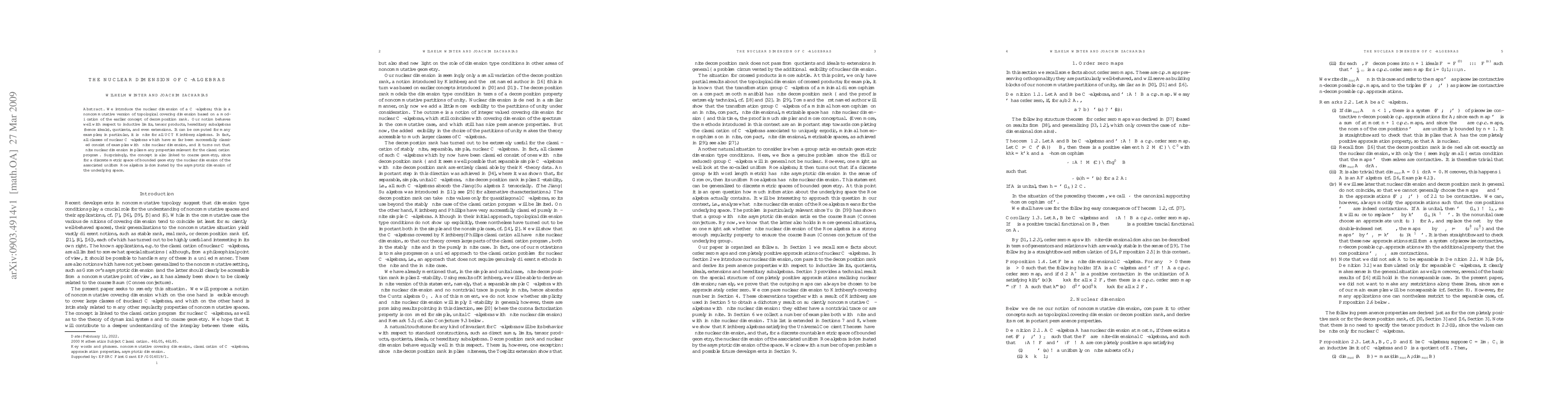 This paper introduces the nuclear dimension of C*-algebras, a noncommutative analog of topological covering dimension, which is well-behaved under various algebraic operations and is finite for UCT Kirchberg algebras. It also links this dimension to coarse geometry through the asymptotic dimension of associated metric spaces.