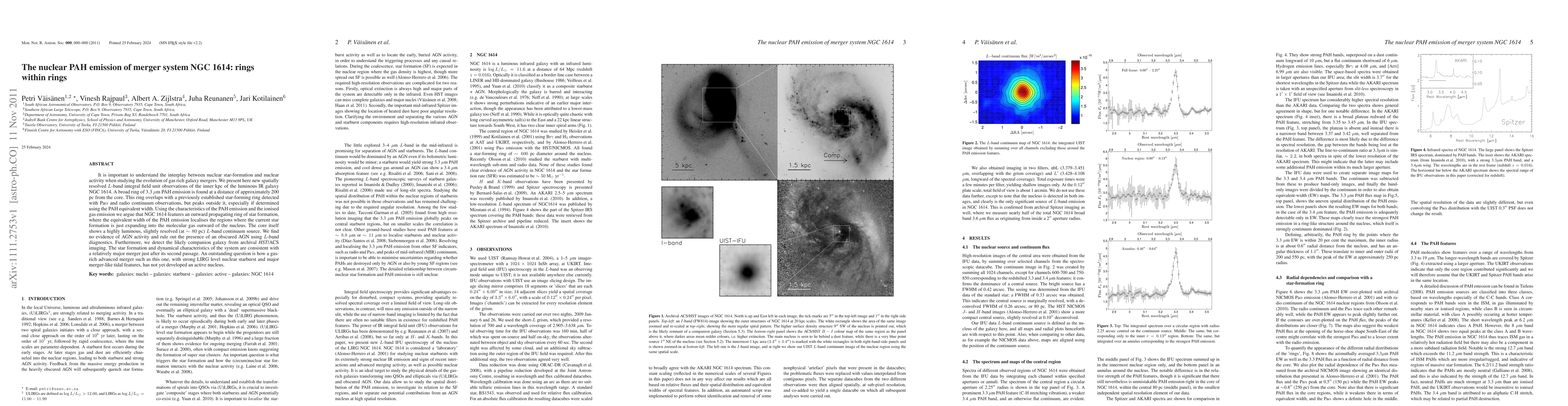 The study of galaxy merger NGC 1614 reveals a broad ring of Polycyclic Aromatic Hydrocarbon (PAH) emission around 200 pc from the core, signifying an outward propagating star formation. Despite intense star formation and being a gas-rich advanced merger, no active nucleus is detected, posing a question about the development of active galactic nuclei in such environments.