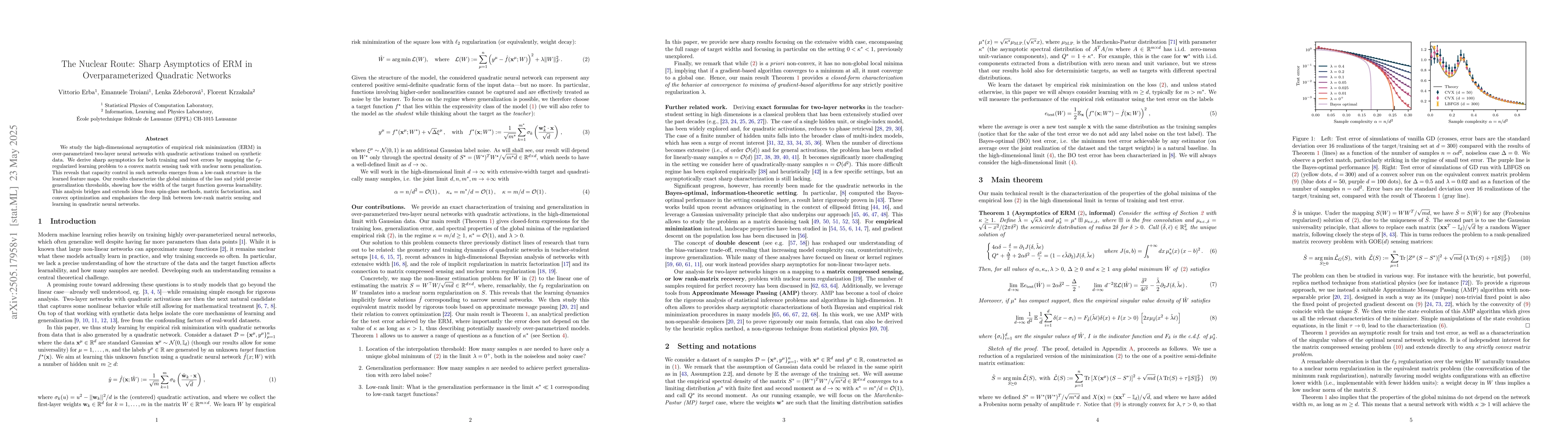 The paper presents a novel approach to analyze ERM in overparameterized quadratic networks by mapping it to a convex matrix sensing problem with nuclear norm penalization.