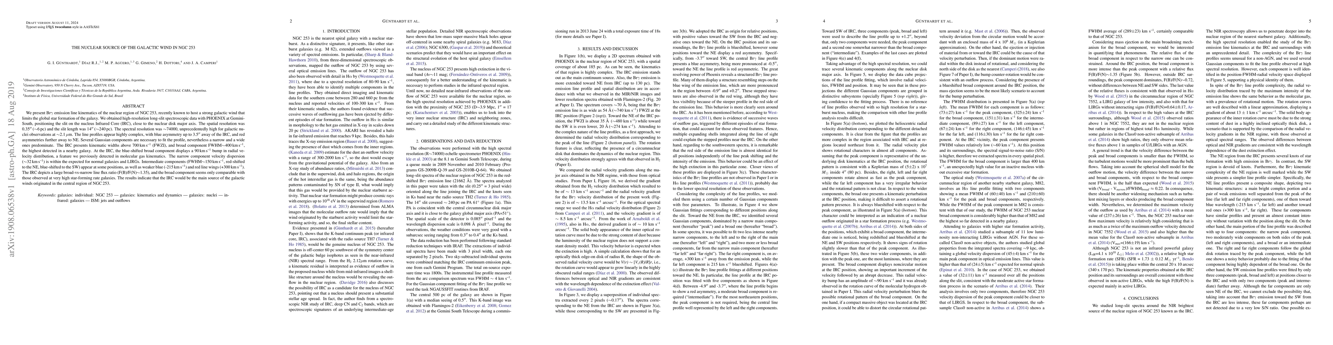 This study uses high-resolution spectroscopy to analyze the Br$\gamma$ emission line kinematics in NGC 253's nuclear region, revealing complex line profiles indicative of a strong galactic wind. The Infrared Core (IRC) is identified as the primary source of the wind, with broad components showing high velocities and a significant broad vs. narrow line flux ratio.