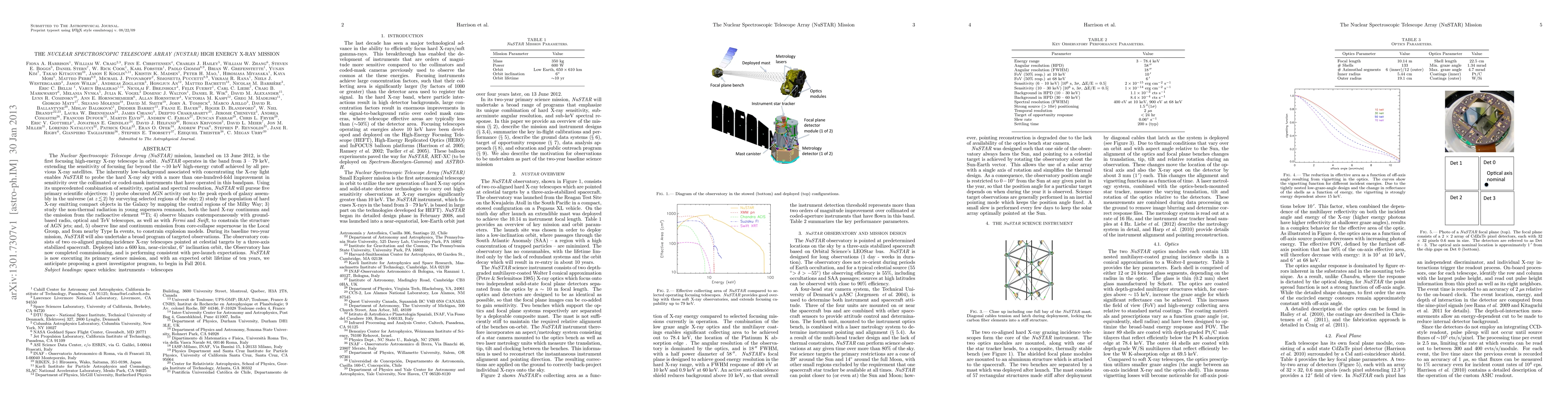 The Nuclear Spectroscopic Telescope Array (NuSTAR) mission, launched on 13 June 2012, is the first focusing high-energy X-ray telescope in orbit. NuSTAR operates in the band from 3 -- 79 keV, extending the sensitivity of focusing far beyond the ~10 keV high-energy cutoff achieved by all previous X-ray satellites. The inherently low-background associated with concentrating the X-ray light enables NuSTAR to probe the hard X-ray sky with a more than one-hundred-fold improvement in sensitivity over the collimated or coded-mask instruments that have operated in this bandpass. Using its unprecedented combination of sensitivity, spatial and spectral resolution, NuSTAR will pursue five primary scientific objectives, and will also undertake a broad program of targeted observations. The observatory consists of two co-aligned grazing-incidence X-ray telescopes pointed at celestial targets by a three-axis stabilized spacecraft. Deployed into a 600 km, near-circular, 6degree inclination orbit, the Observatory has now completed commissioning, and is performing consistent with pre-launch expectations. NuSTAR is now executing its primary science mission, and with an expected orbit lifetime of ten years, we anticipate proposing a guest investigator program, to begin in Fall 2014.