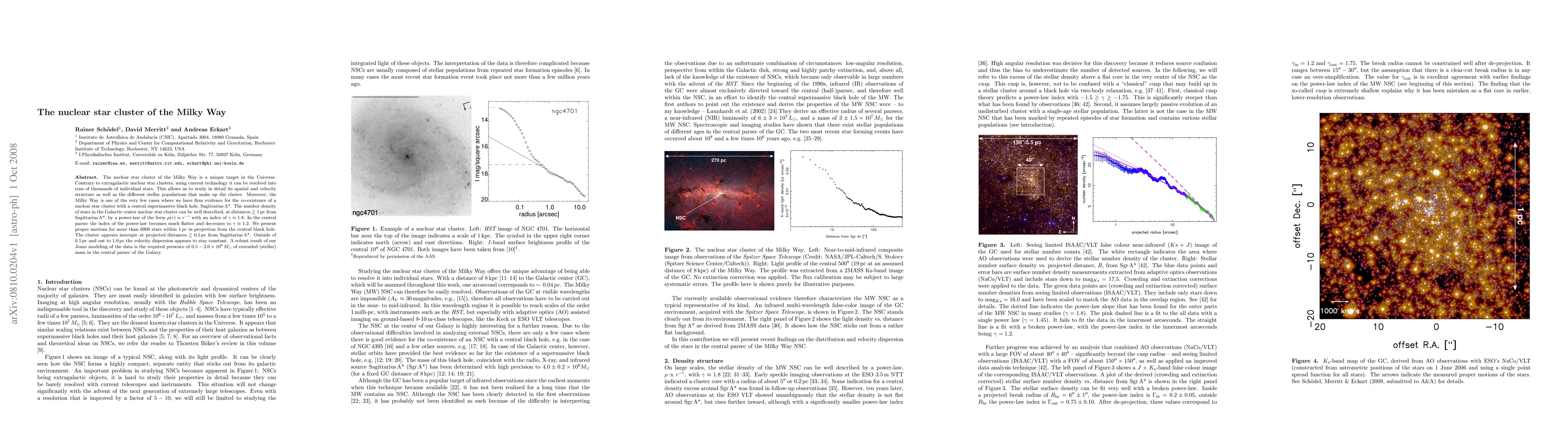 This paper investigates the Milky Way's nuclear star cluster, revealing its spatial and velocity structure, and confirming the coexistence of a supermassive black hole, Sagittarius A*. The study finds a power-law density distribution with an index of $\gamma\approx1.8$ beyond 1 pc, decreasing to $\gamma\approx1.2$ within 0.5 pc, and identifies $0.5-2.0\times10^{6} M_{\odot}$ of extended stellar mass in the central parsec.