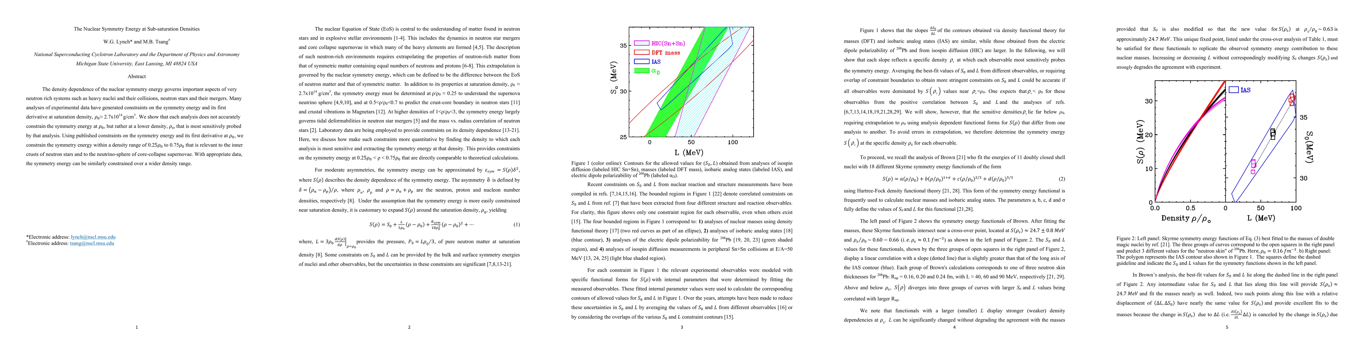This paper investigates the density dependence of nuclear symmetry energy, focusing on sub-saturation densities. It demonstrates that current experimental constraints are more applicable at lower densities than at saturation density, and provides new constraints within the density range relevant to neutron star inner crusts and supernova neutrino-spheres.