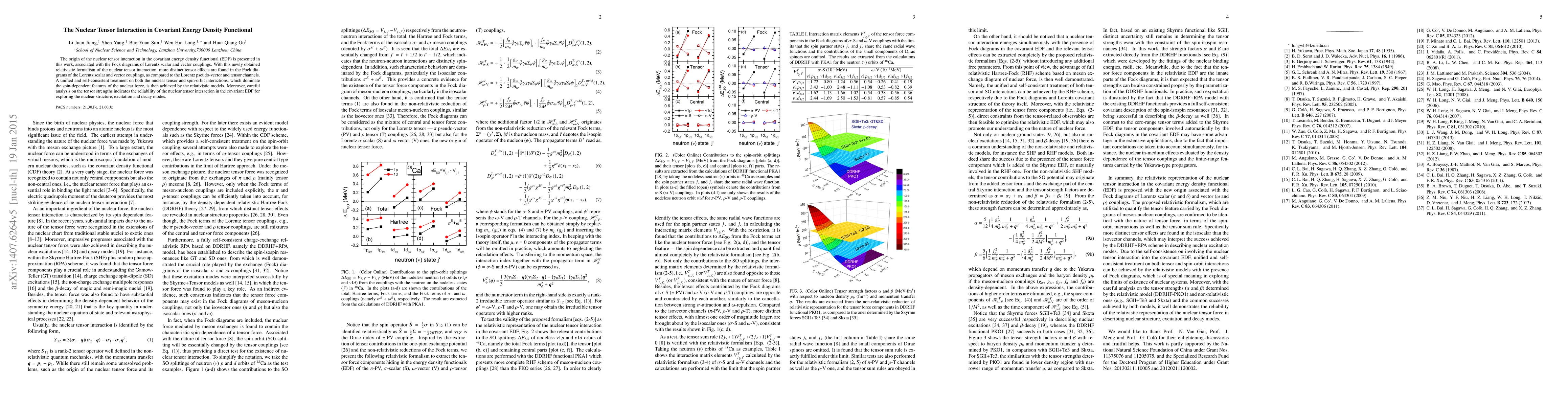 This paper derives the nuclear tensor interaction within the covariant energy density functional, revealing distinct tensor effects in Fock diagrams of Lorentz scalar and vector couplings. It achieves a unified treatment of nuclear tensor and spin-orbit interactions, demonstrating the reliability of the nuclear tensor interaction for exploring nuclear structure and dynamics.