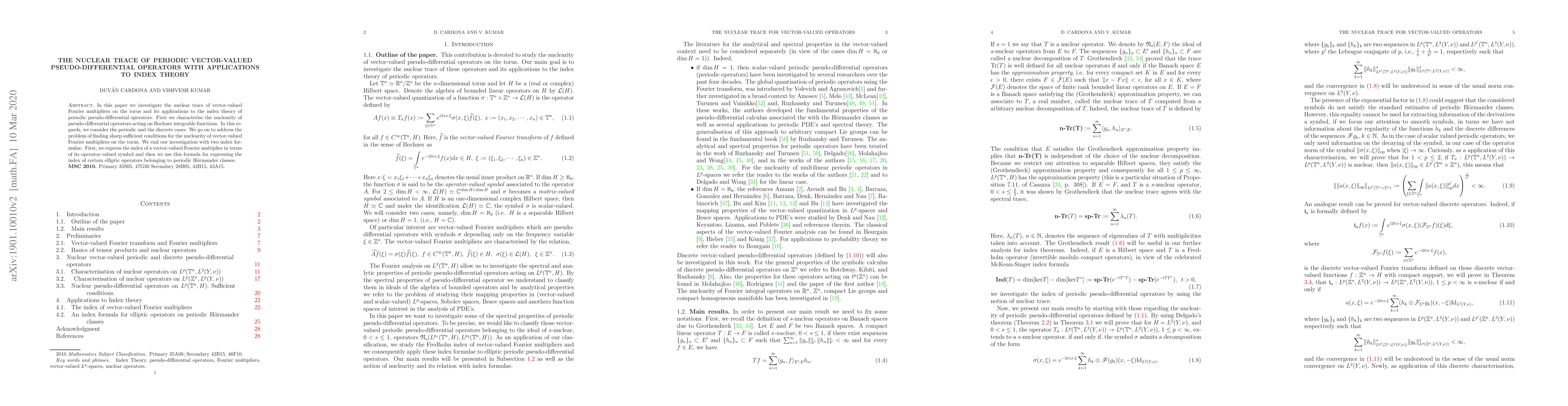 This paper examines the nuclear trace of vector-valued Fourier multipliers on the torus and its implications for the index theory of periodic pseudo-differential operators. It provides conditions for the nuclearity of these operators and derives index formulae for elliptic operators in periodic Hörmander classes.
